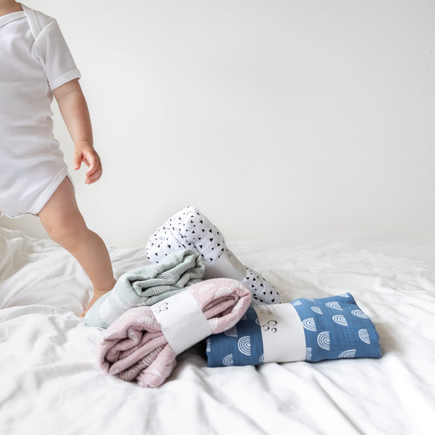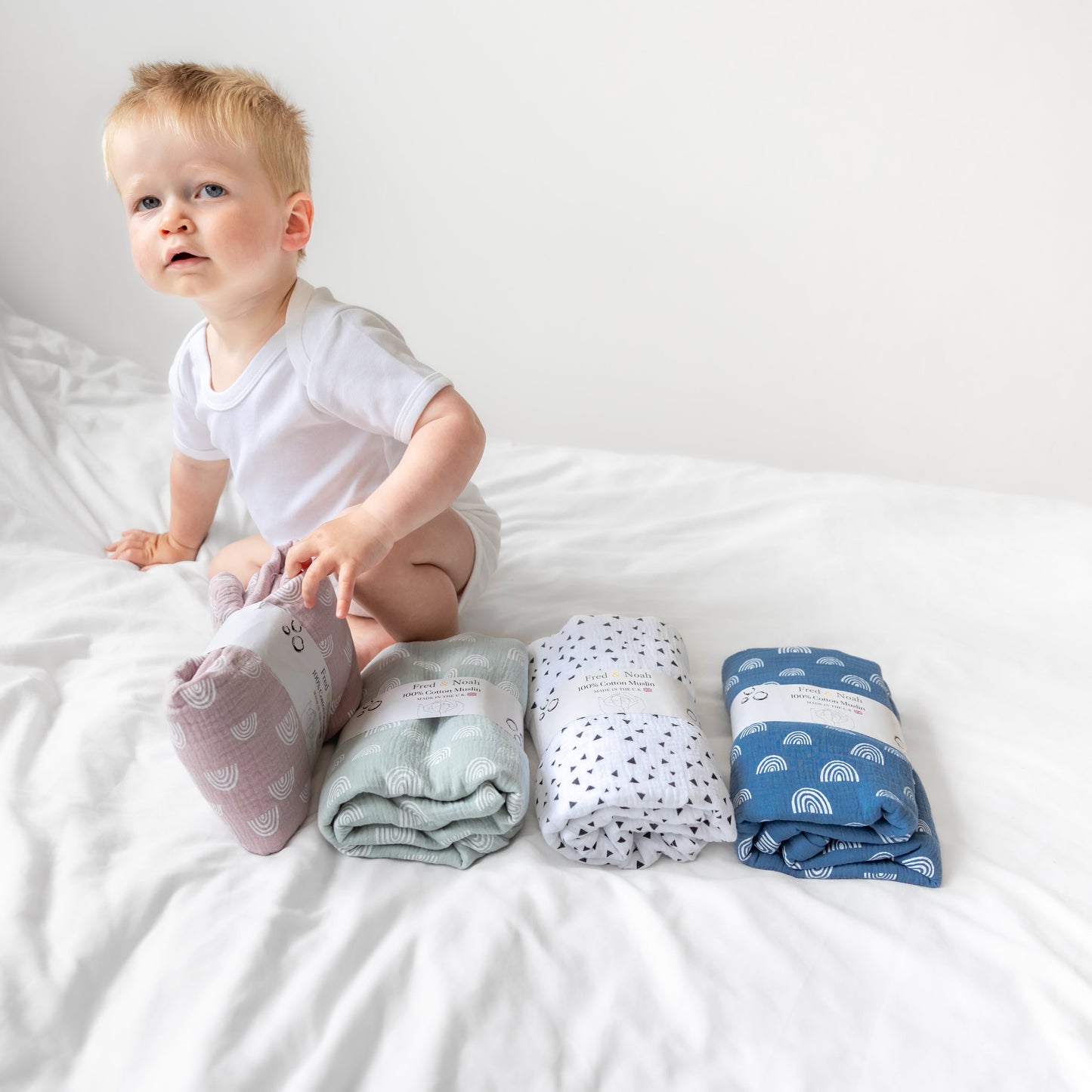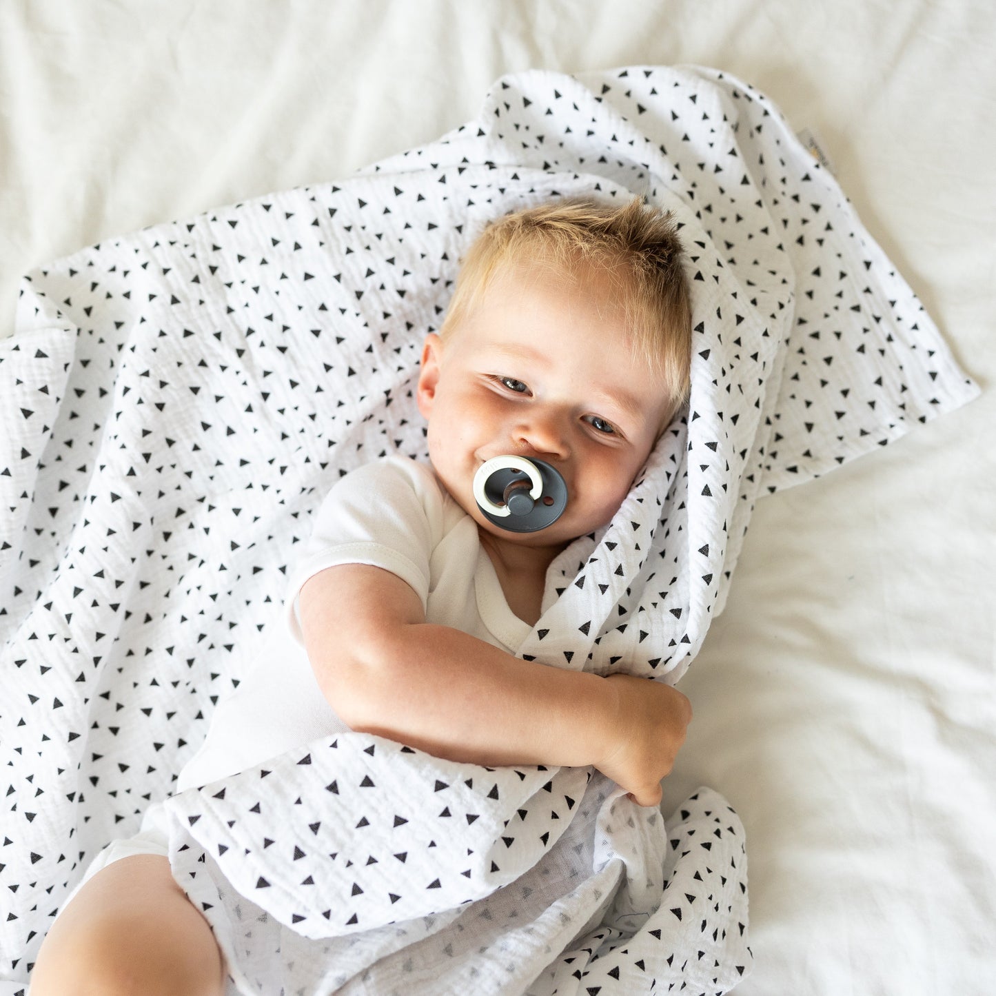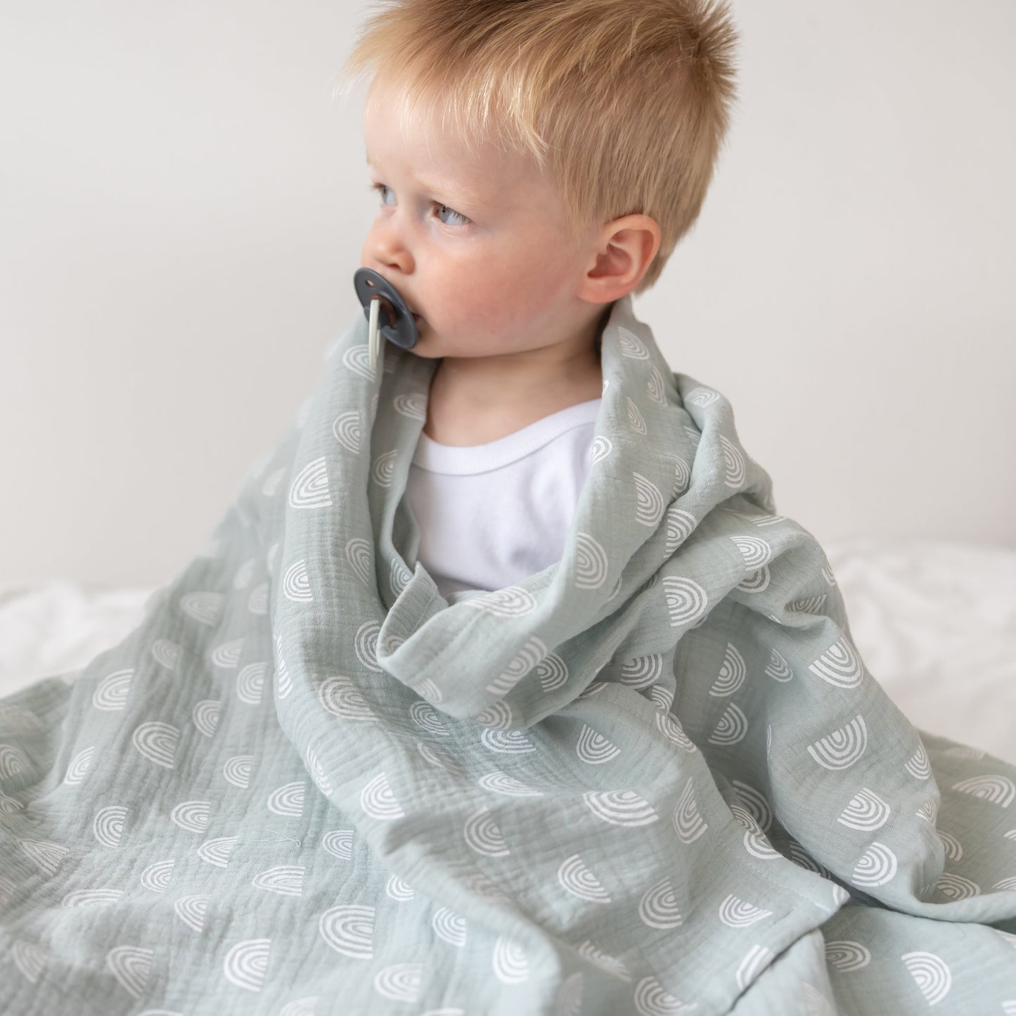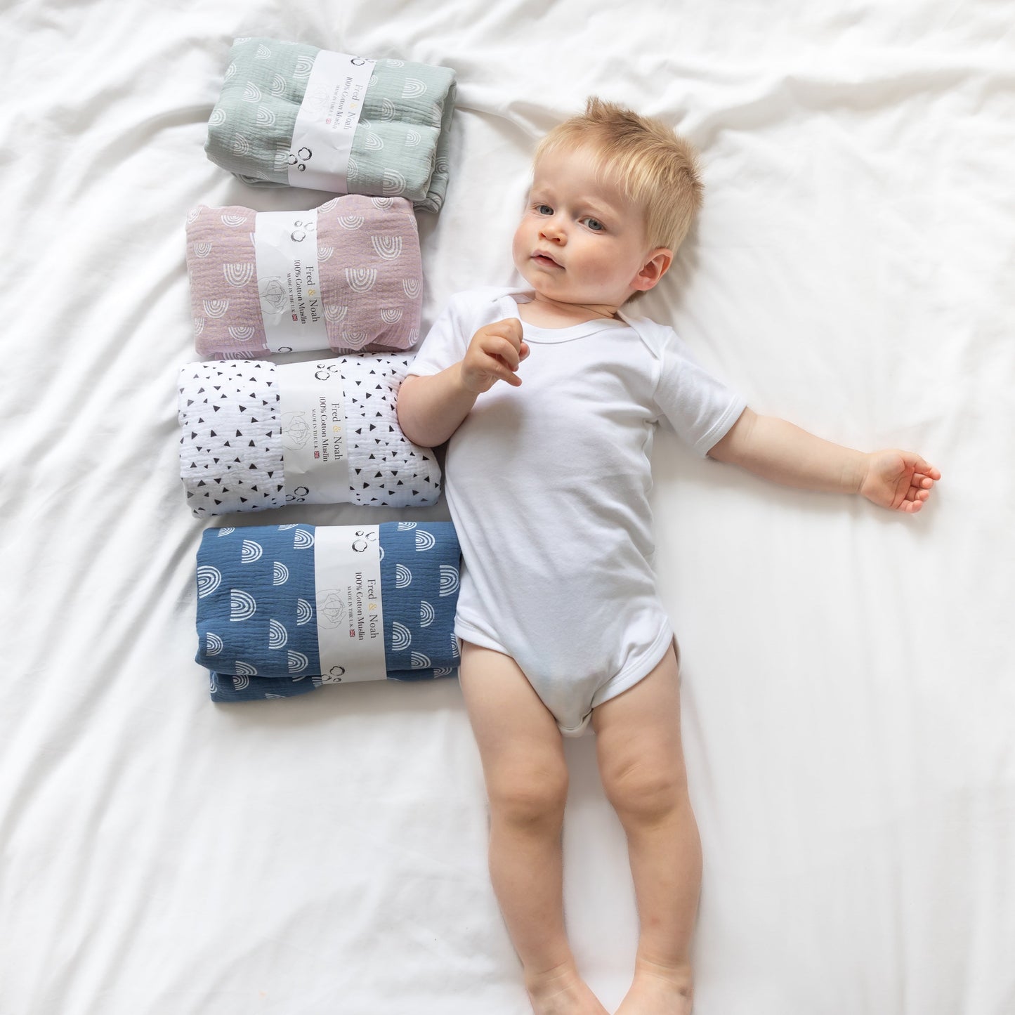 Our XL super soft Organic muslin swaddle is generously sized and perfect for: