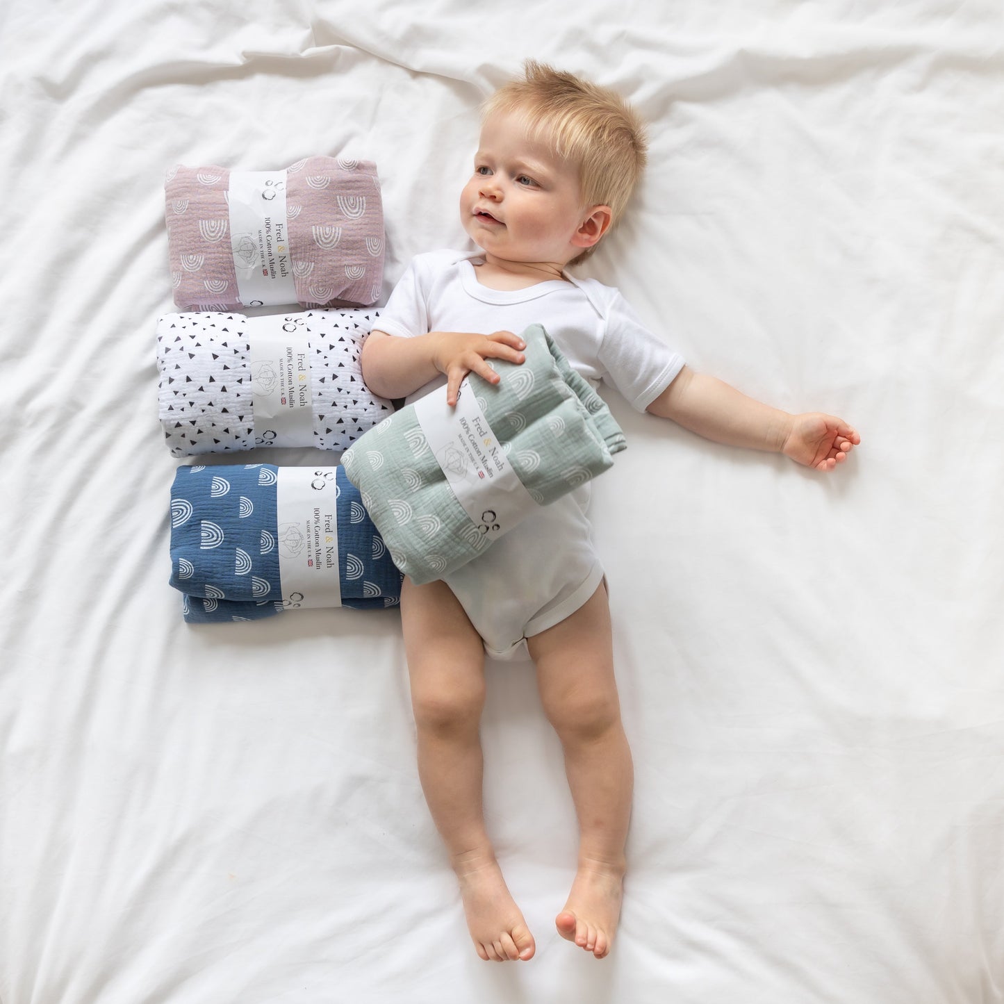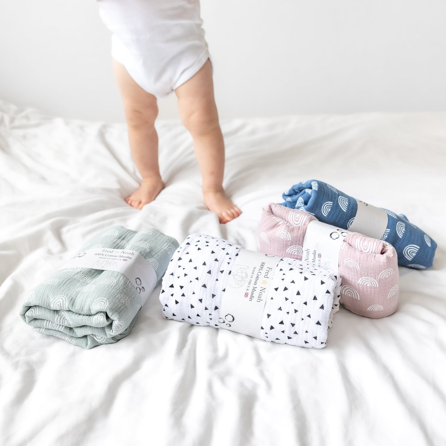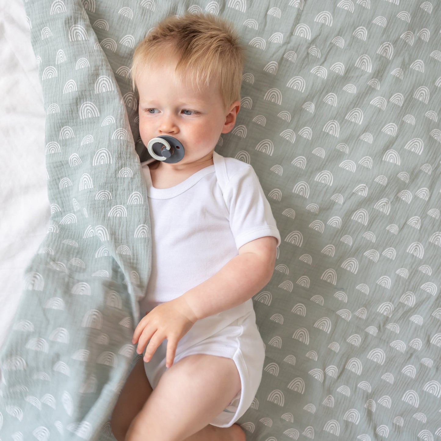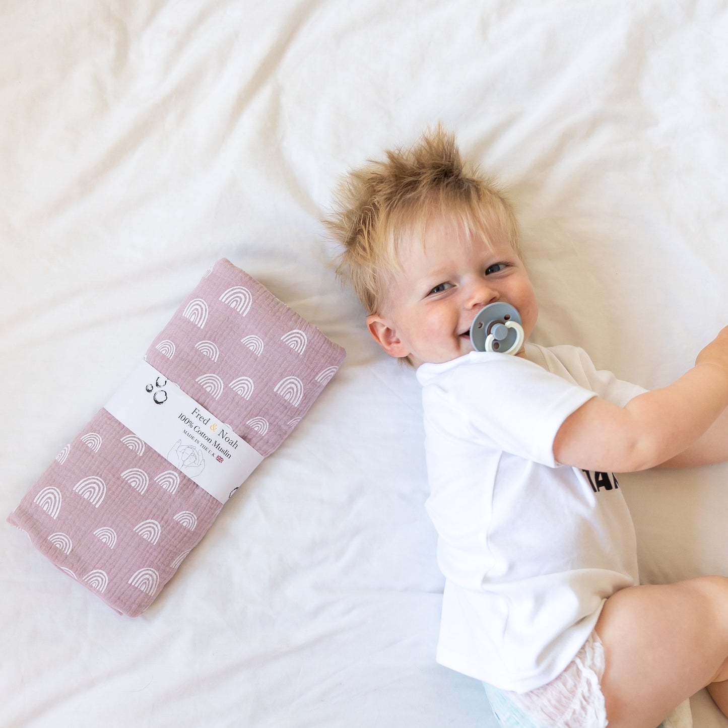 Our XL super soft Organic muslin swaddle is generously sized and perfect for: