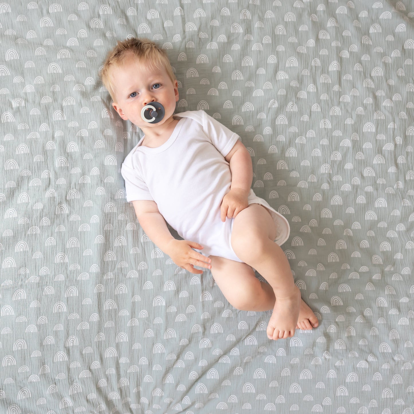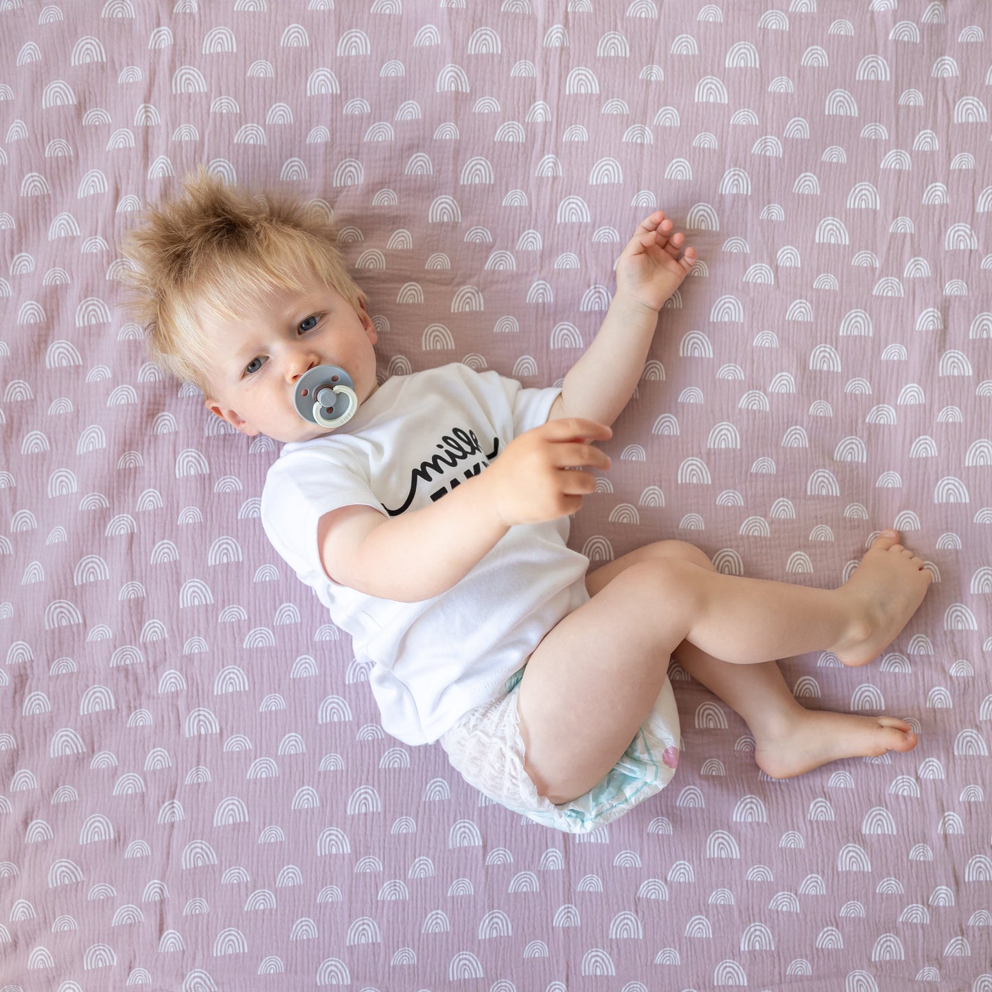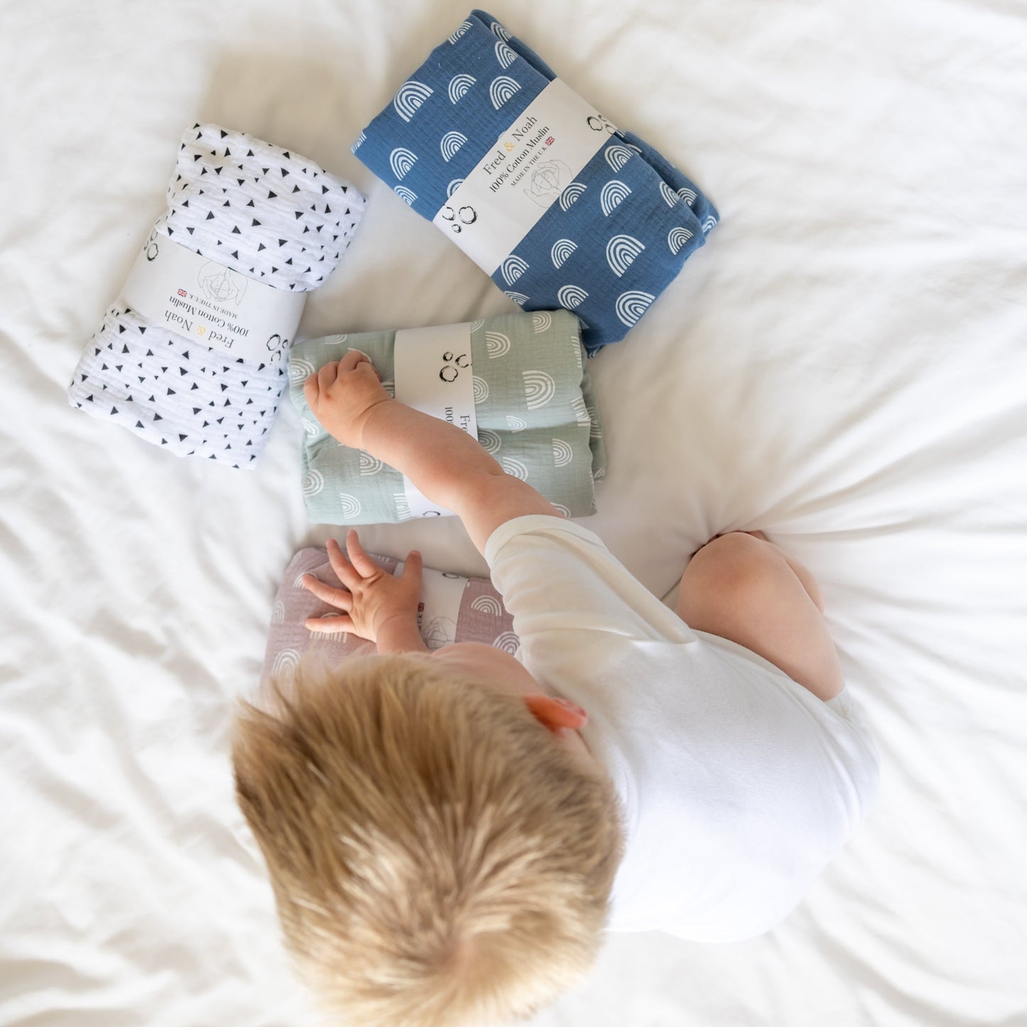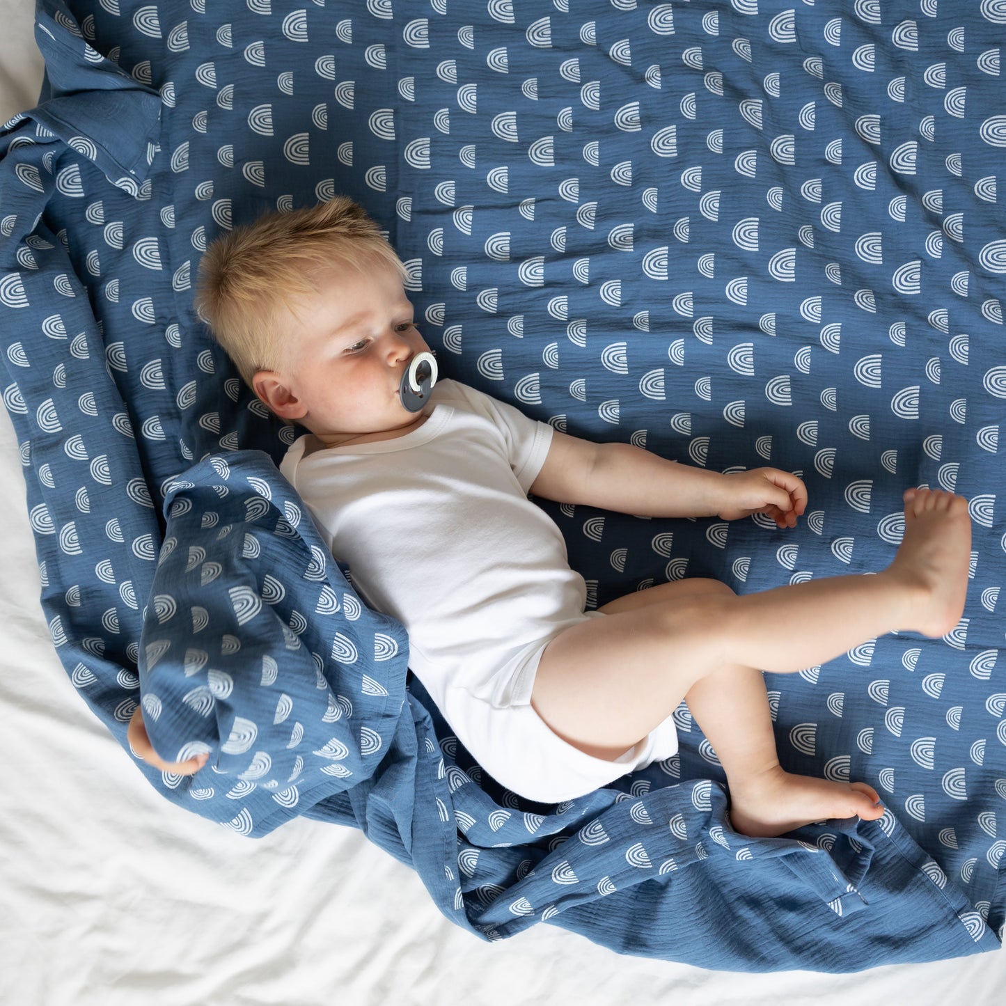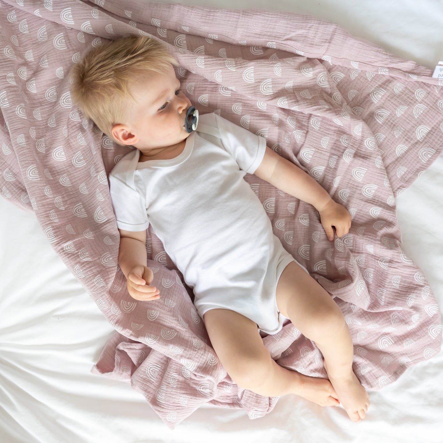 Our XL super soft Organic muslin swaddle is generously sized and perfect for: