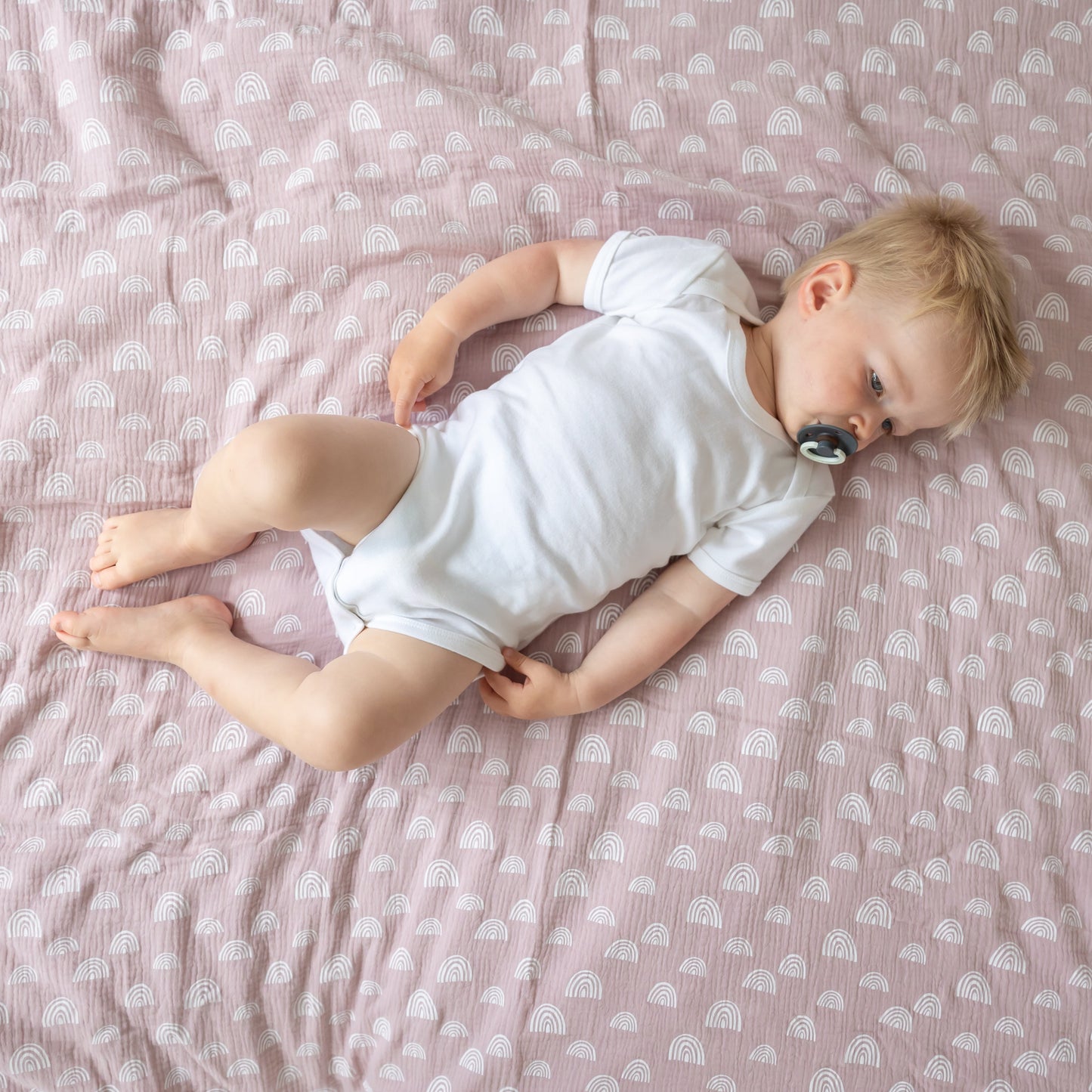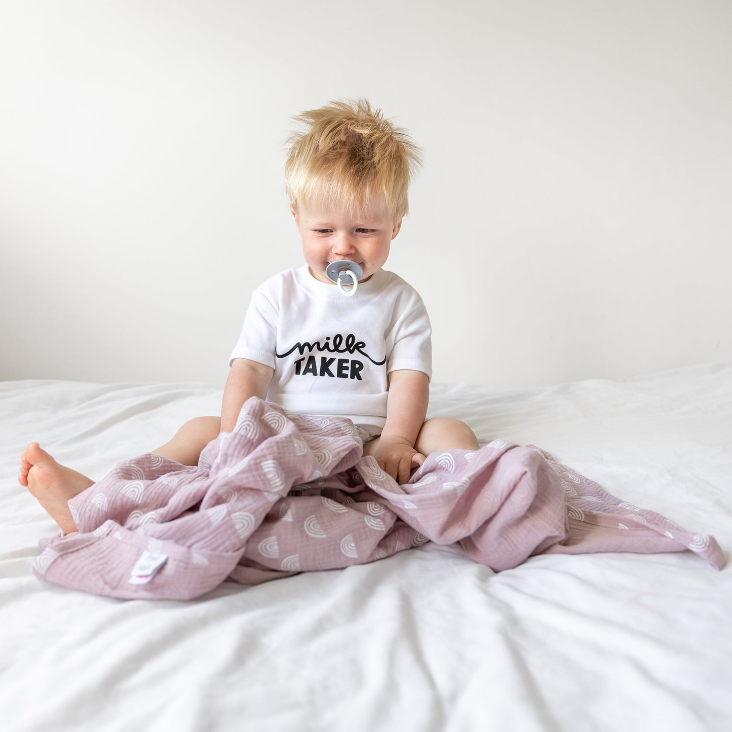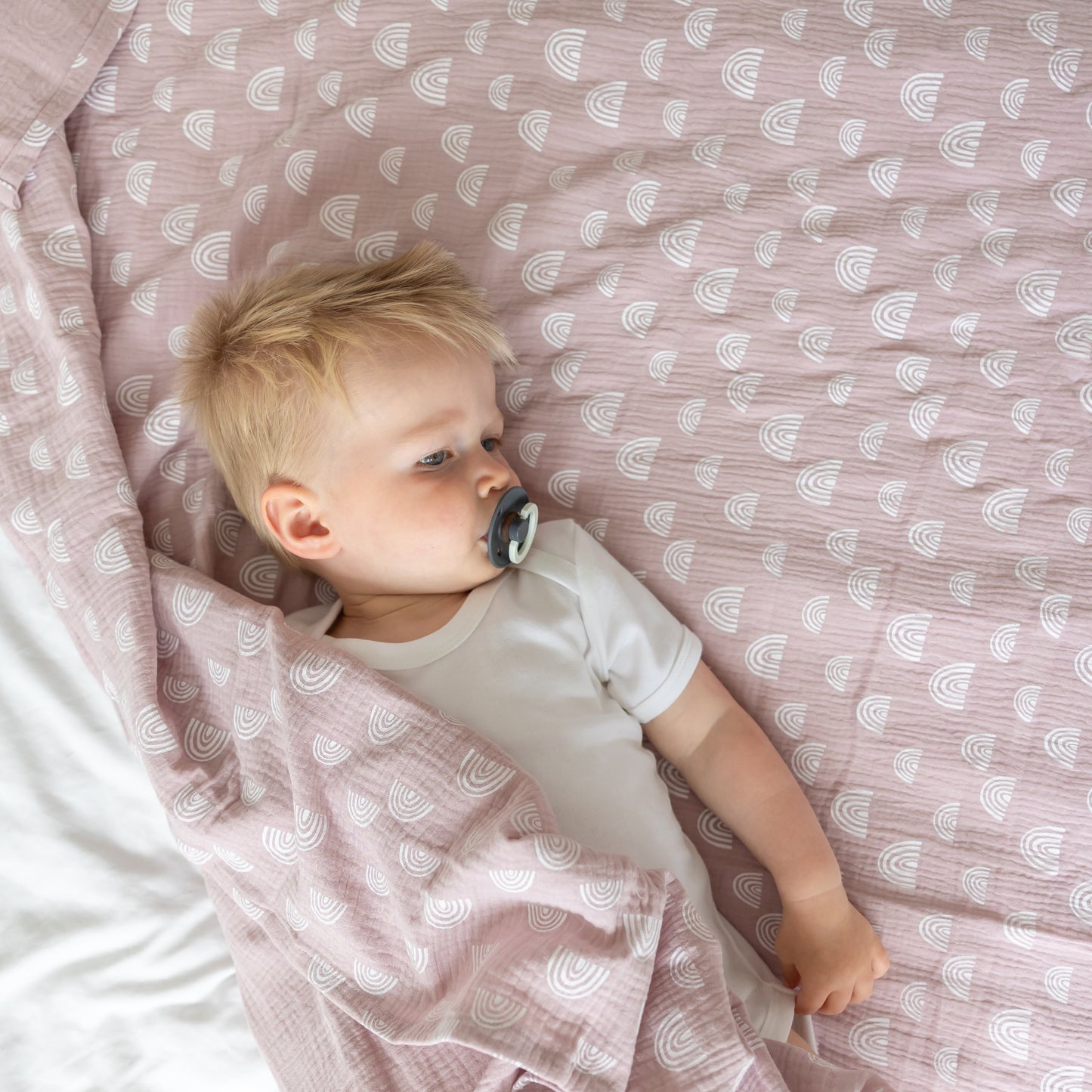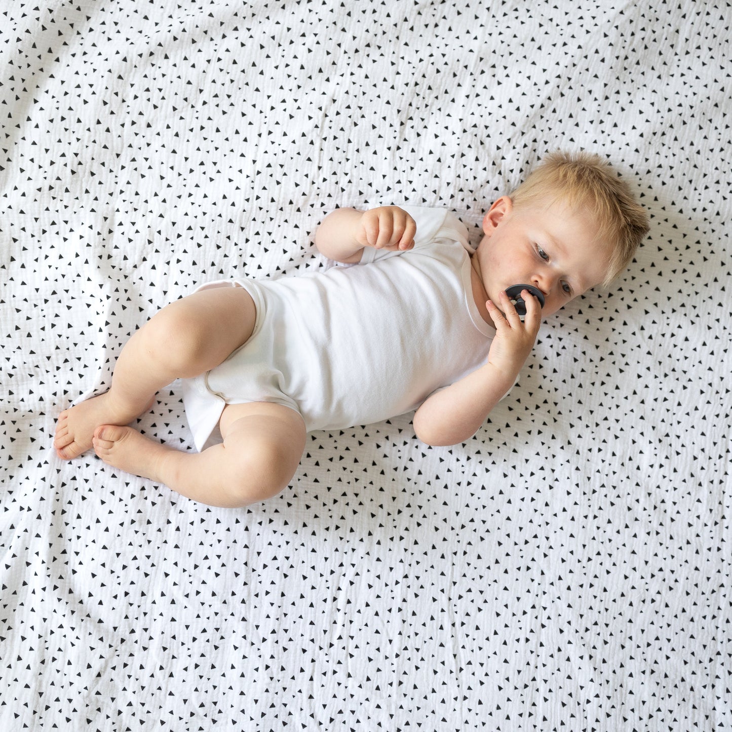 Our XL super soft Organic muslin swaddle is generously sized and perfect for: