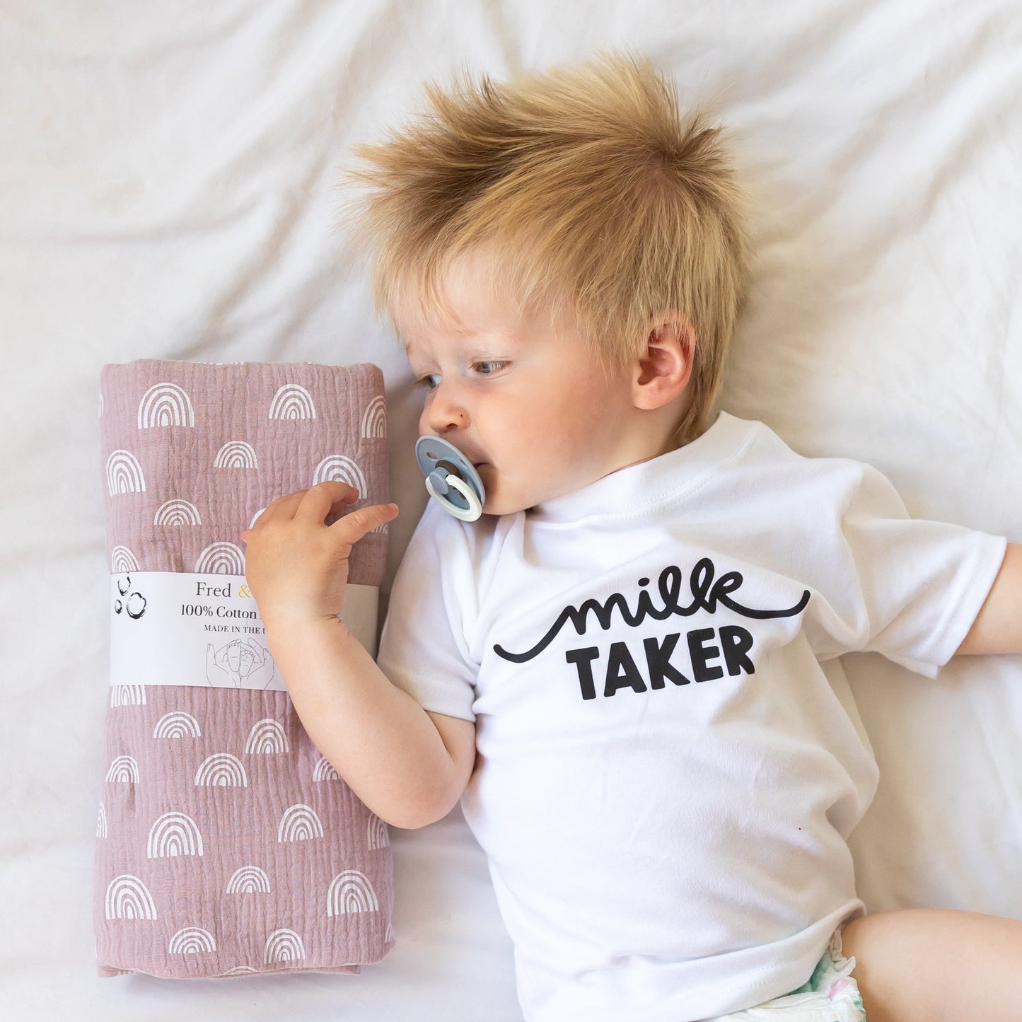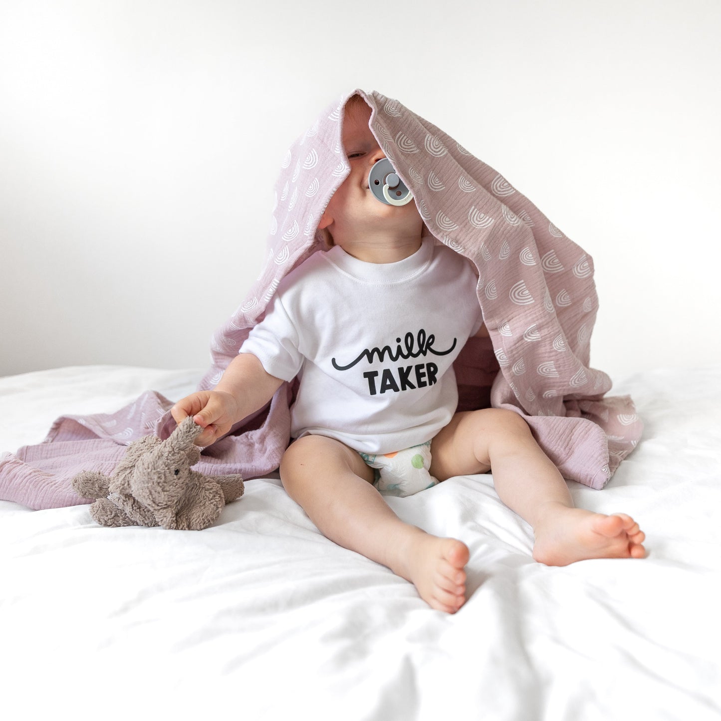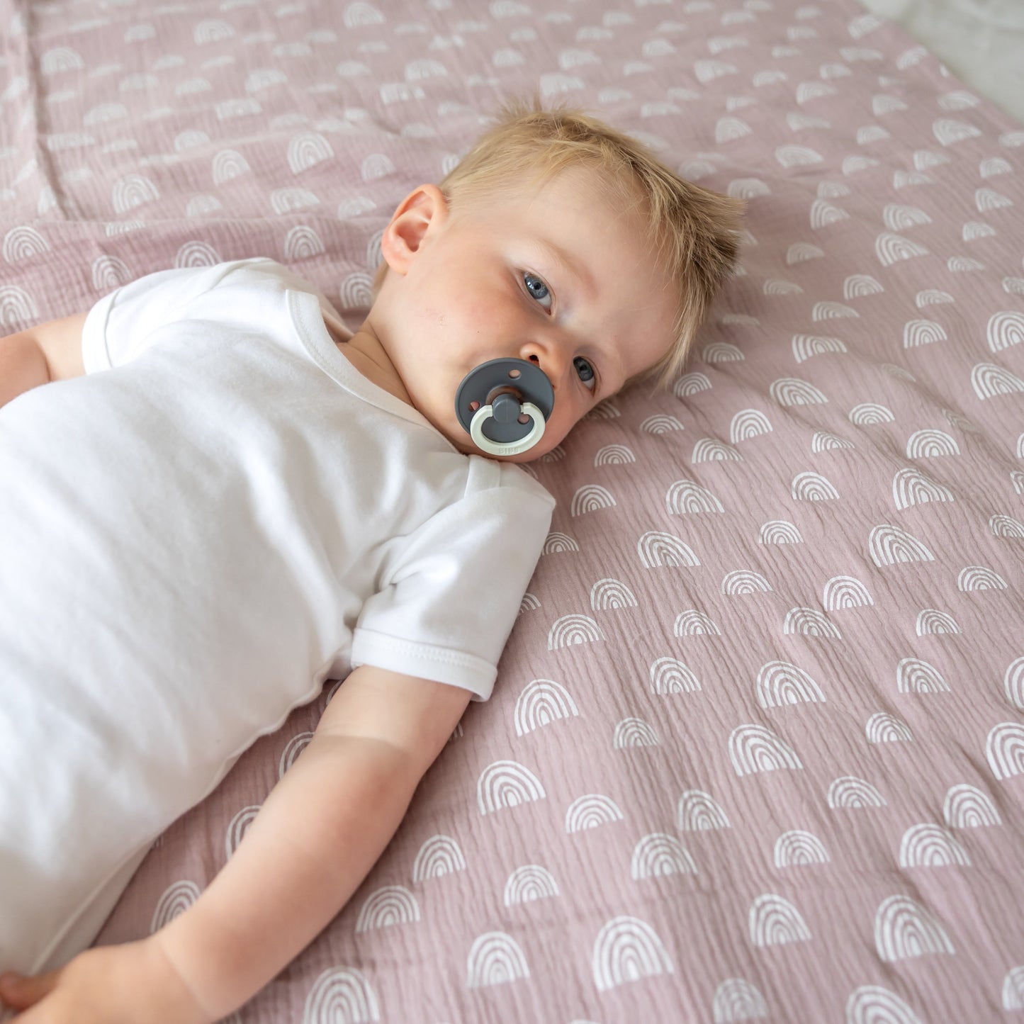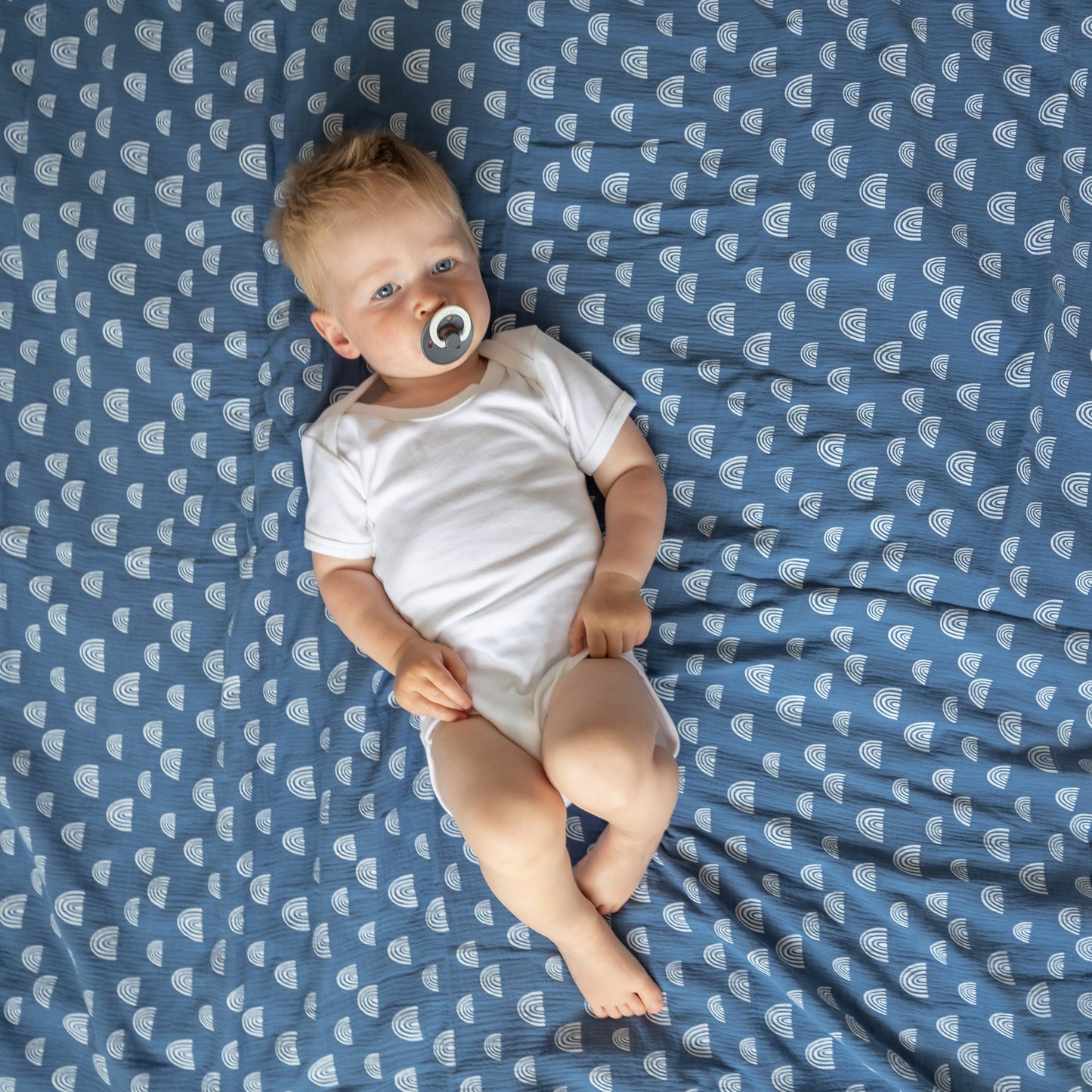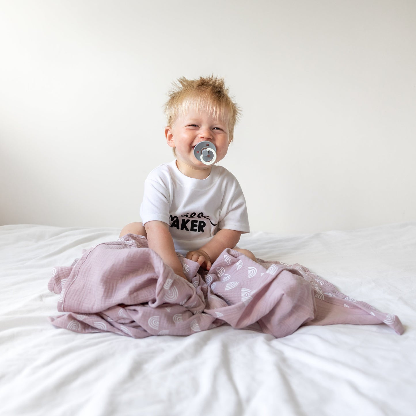 Our XL super soft Organic muslin swaddle is generously sized and perfect for: