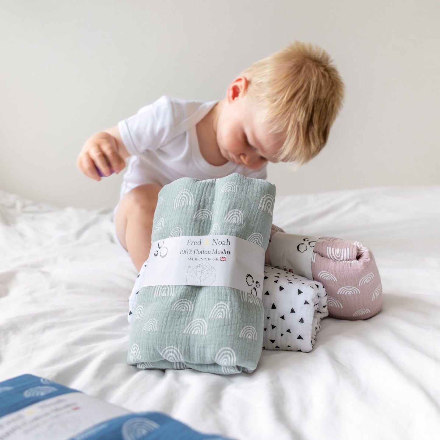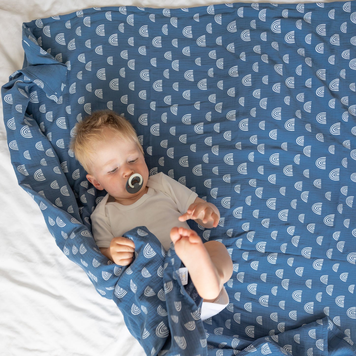 Measuring 120cm x 120cm and made from 100% Organic muslin cotton