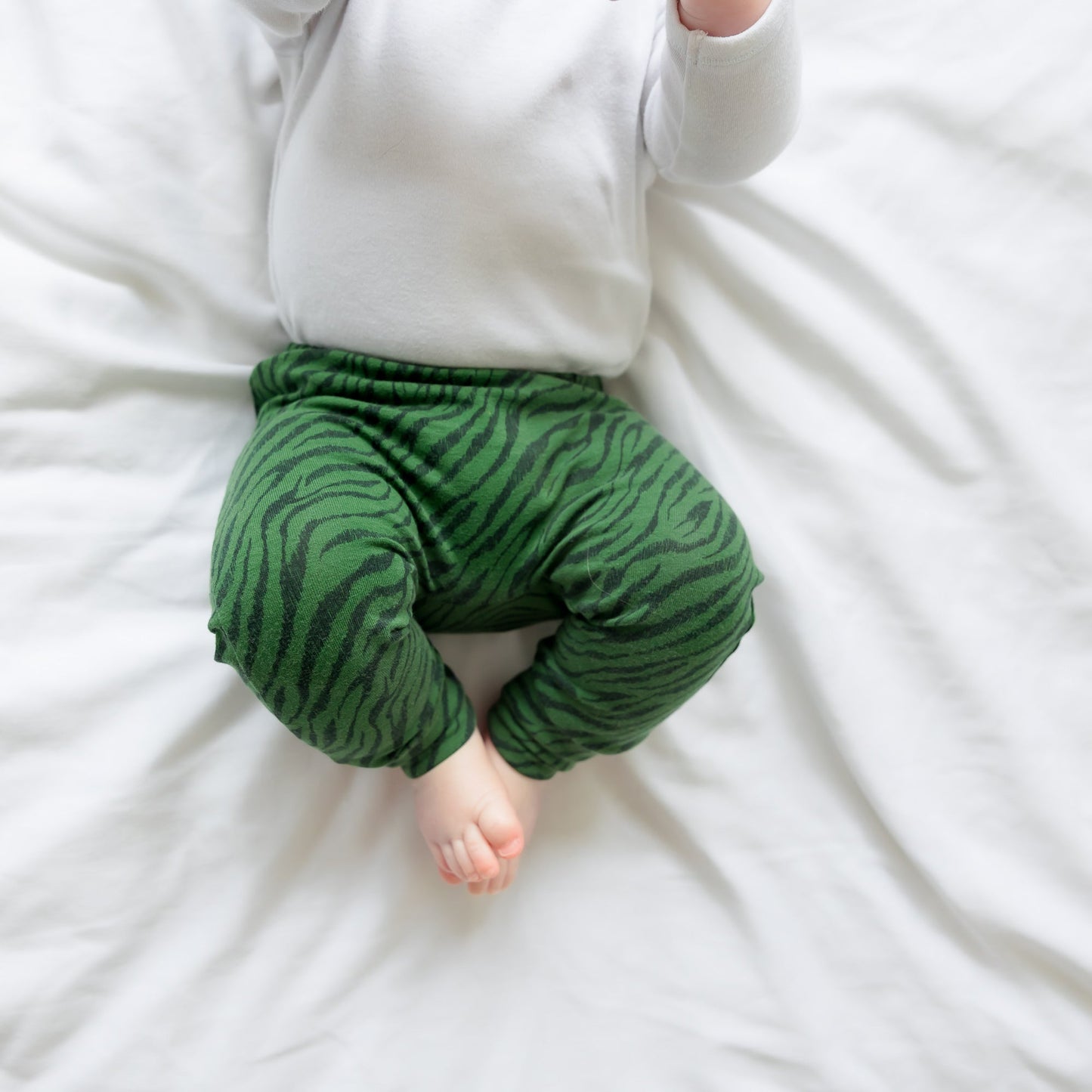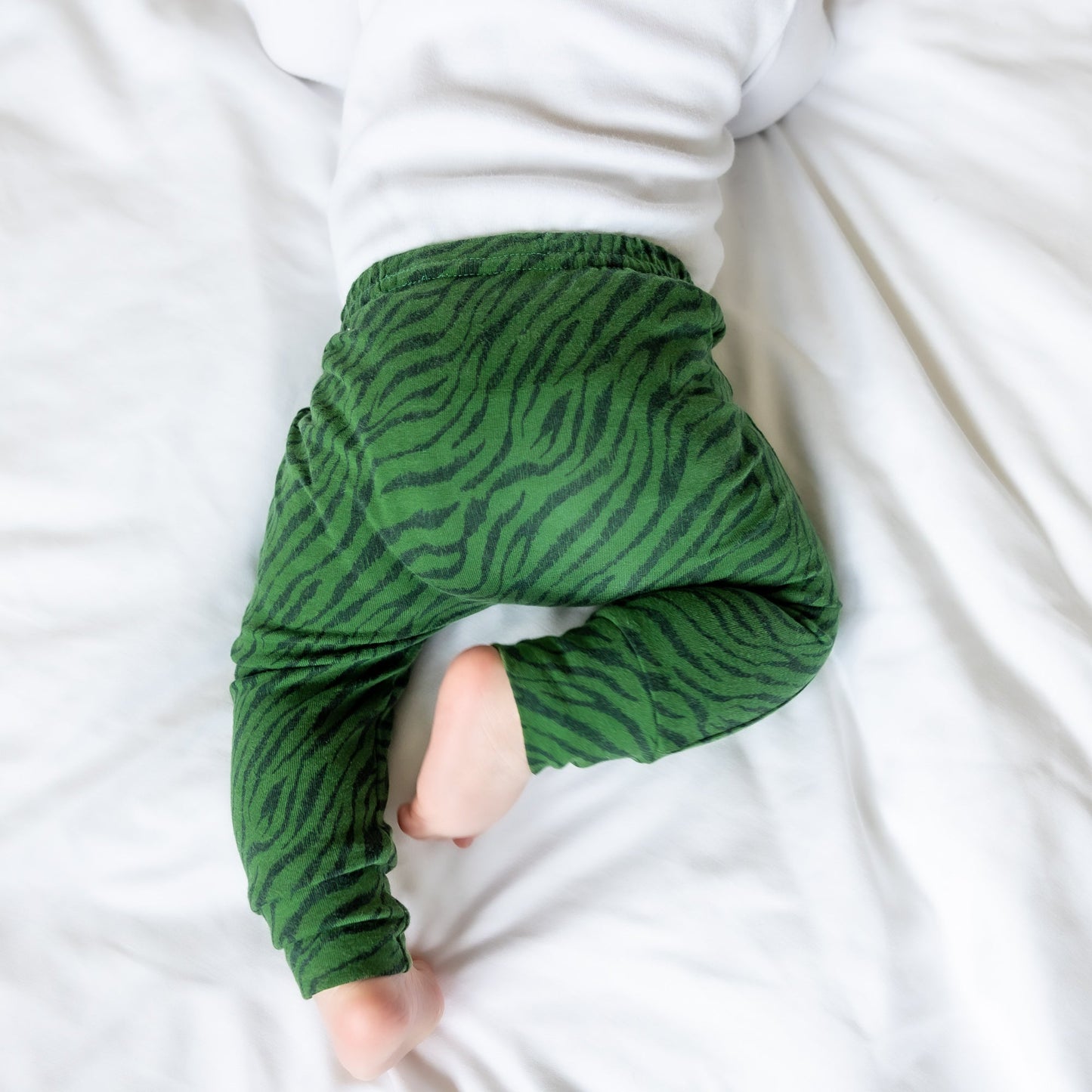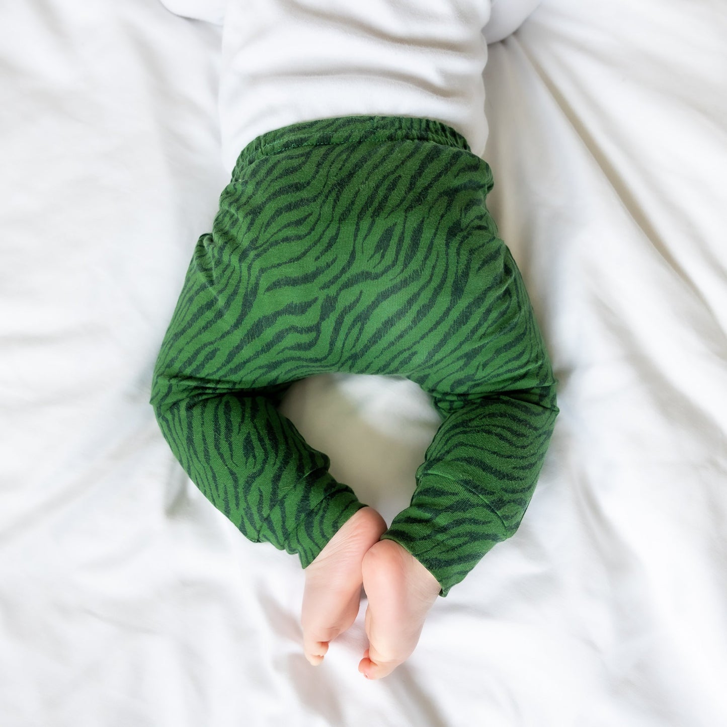 Fred & Noah baby leggings feature an enclosed non roll elasticated waist and are available in sizes 0-6. ( Premature sizes are available upon request ) The leggings also feature a reversible ankle cuff which can be turned up for shorter babies whilst also keeping their little socks on .All of our styles are cut for both disposable and cloth nappies and can be mixed and matched with our range of hand printed vests and T shirts .