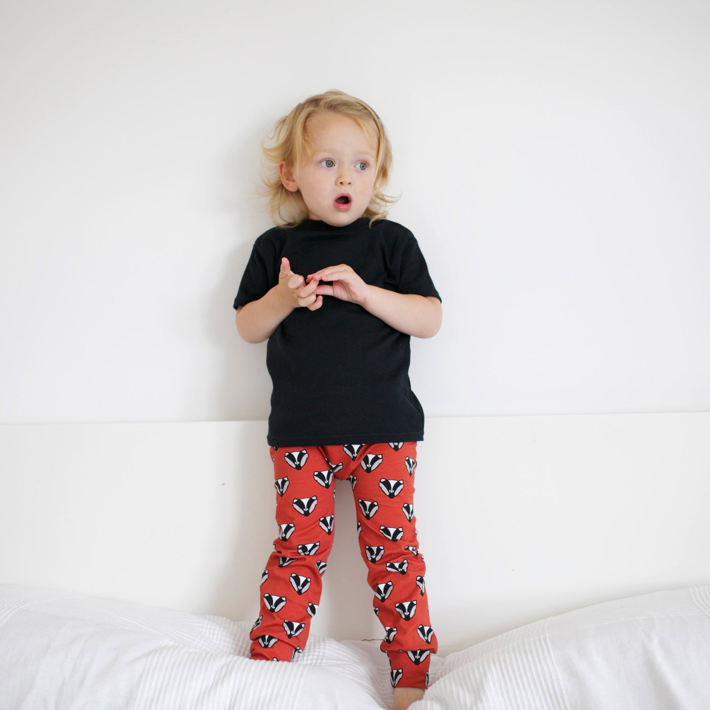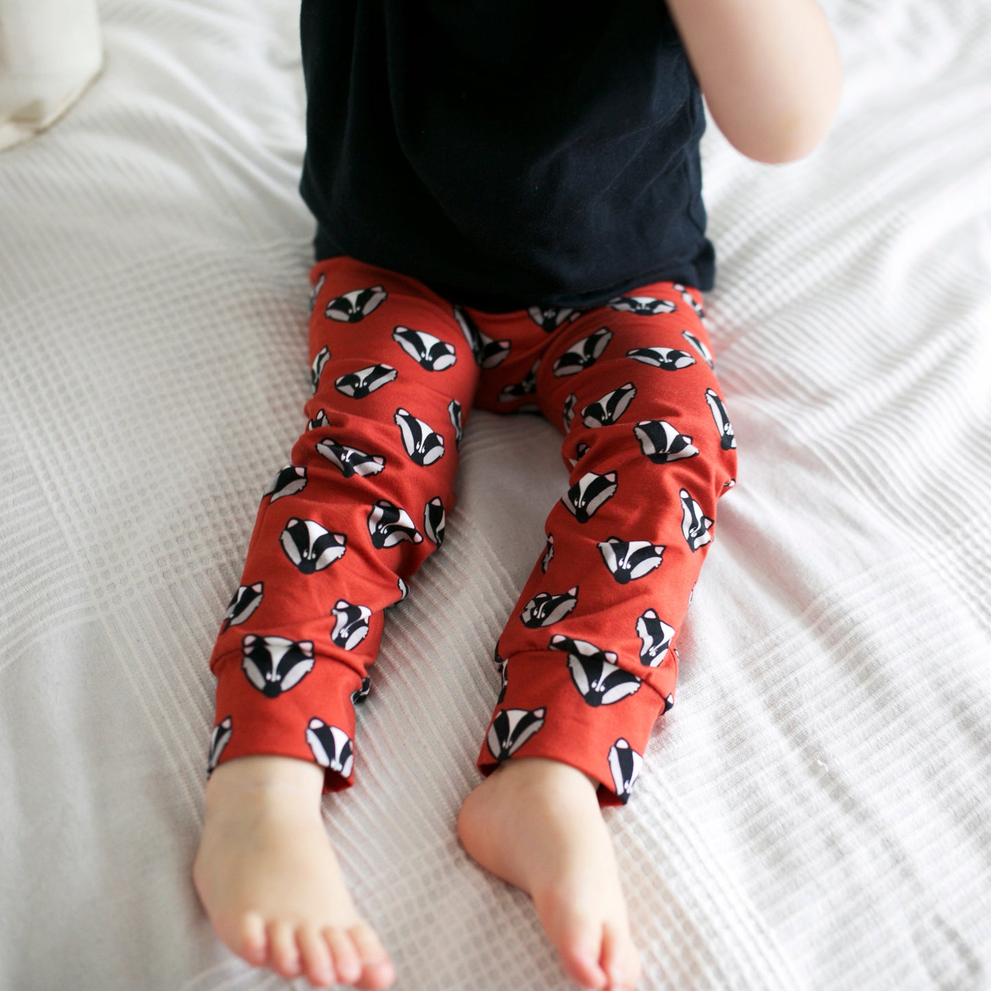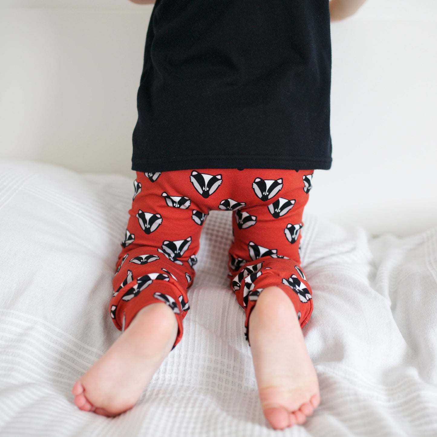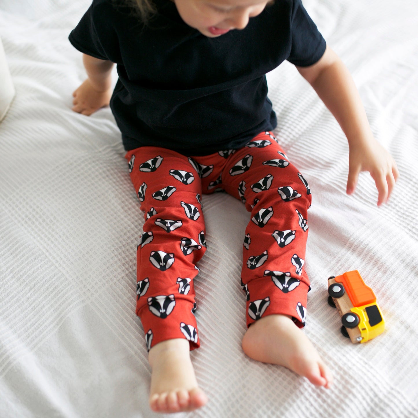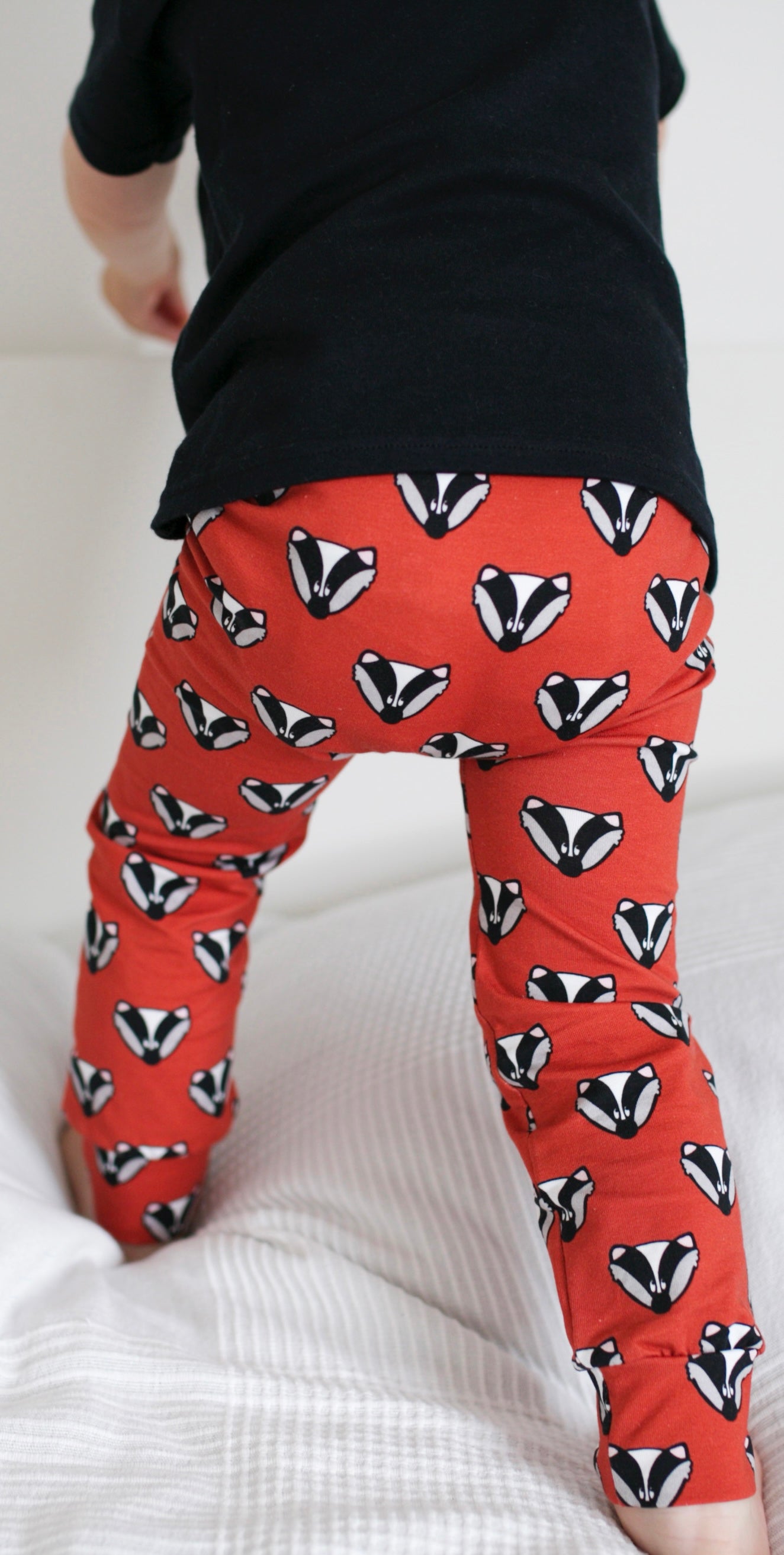 Our Rusty the Badger leggings are made in the UK from 95% Cotton 5 % Elastane