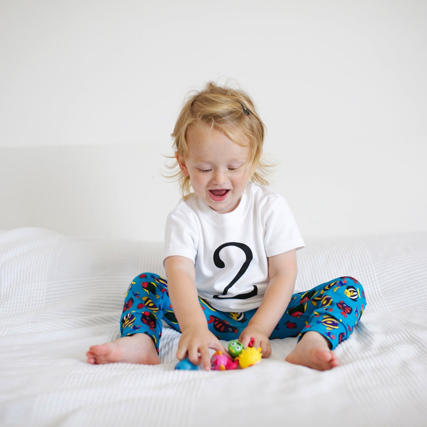 Fred & Noah baby leggings feature an enclosed non roll elasticated waist and are available in sizes 0-6. ( Premature sizes are available upon request ) The leggings also feature a reversible ankle cuff which can be turned up for shorter babies whilst also keeping their little socks on .All of our styles are cut for both disposable and cloth nappies and can be mixed and matched with our range of hand printed vests and T shirts .