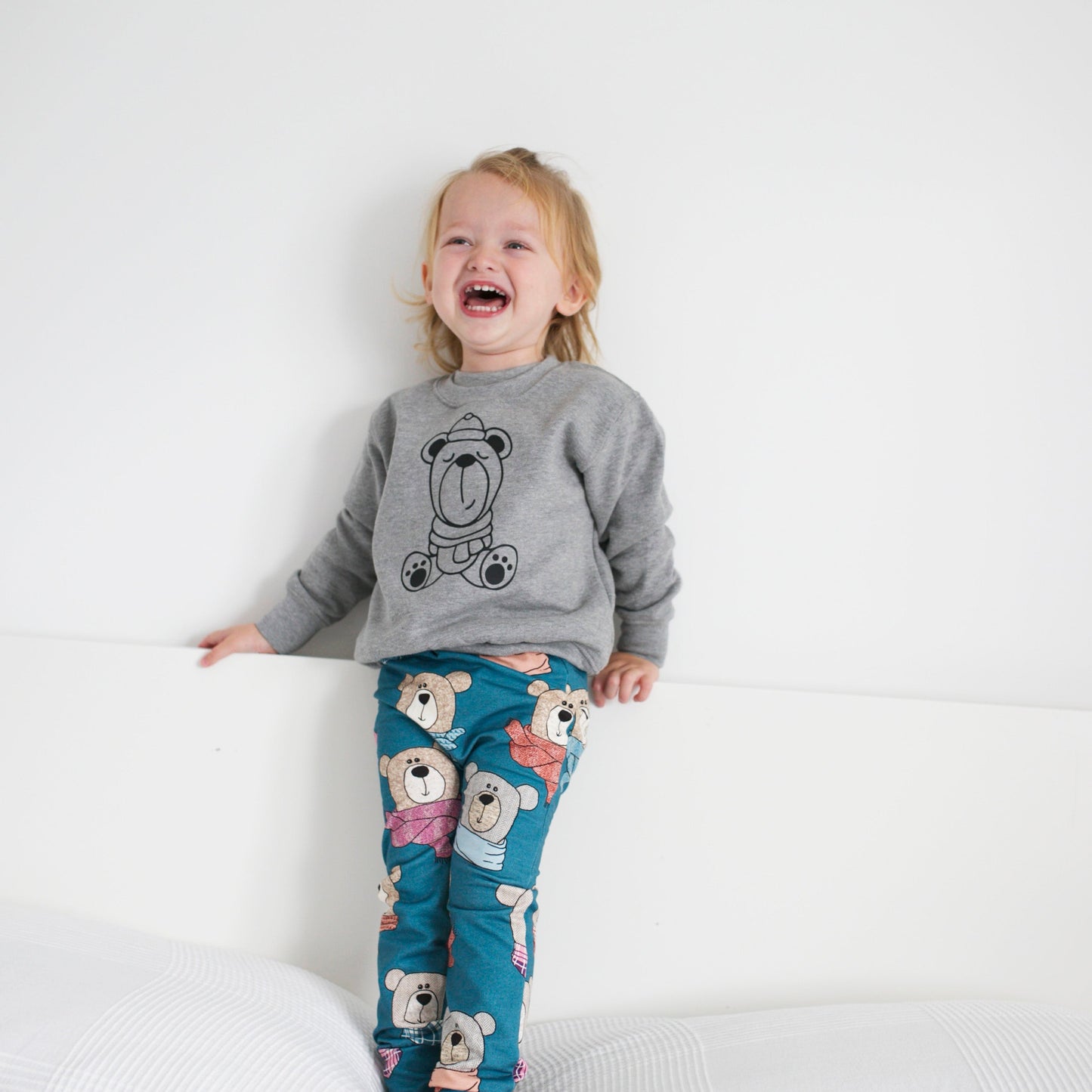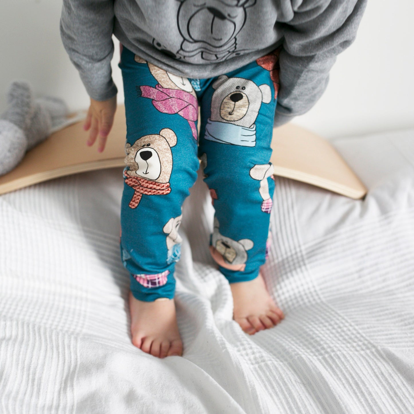 Our new warm cosy bear print leggings are made in the UK from 95% Cotton 5 % Elastane