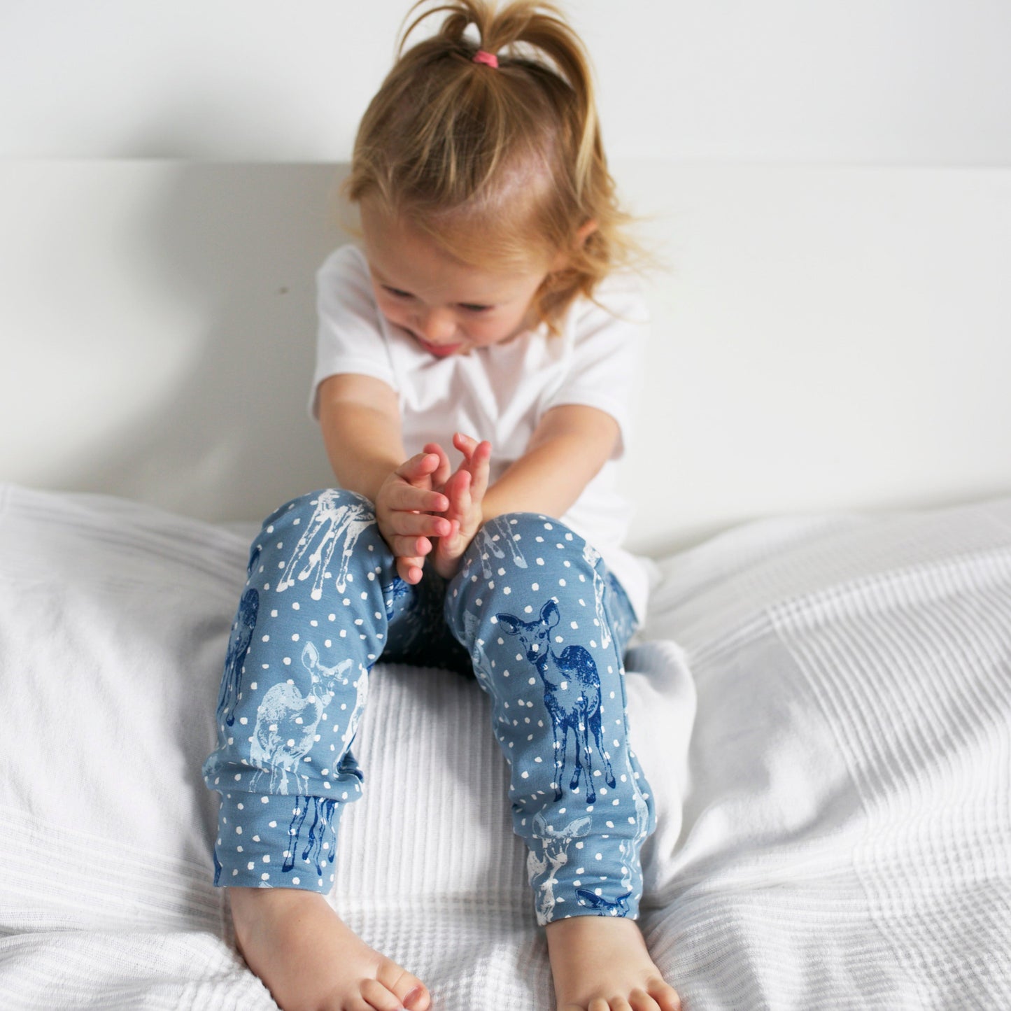 Our Dotty Deer print leggings are made in the UK from 95% Cotton 5 % Elastane