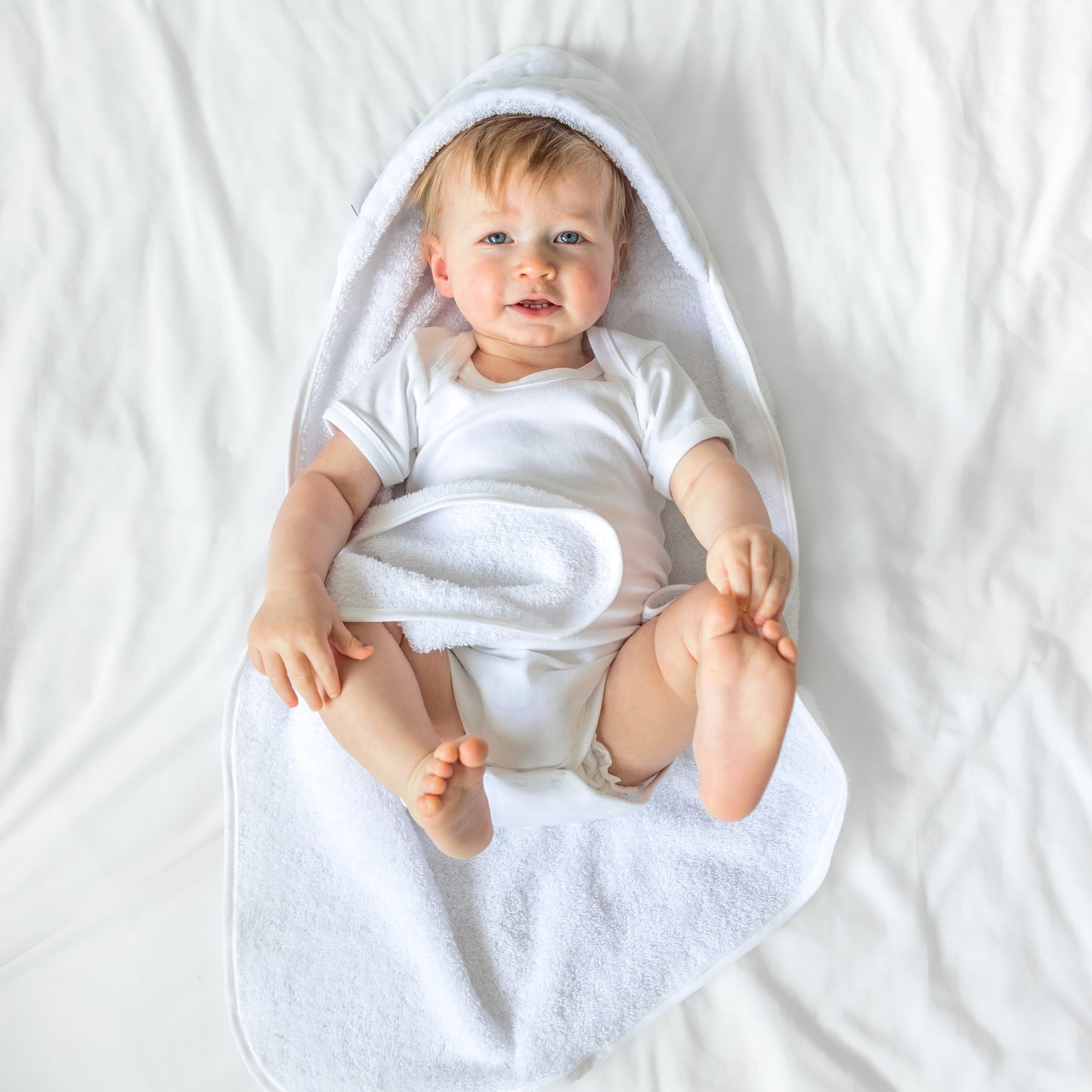 Our Exclusive British made hooded towels are made from super-soft terry towelling for comfort & absorption. Perfect for snuggling your baby up after bath time making them warm and cosy.