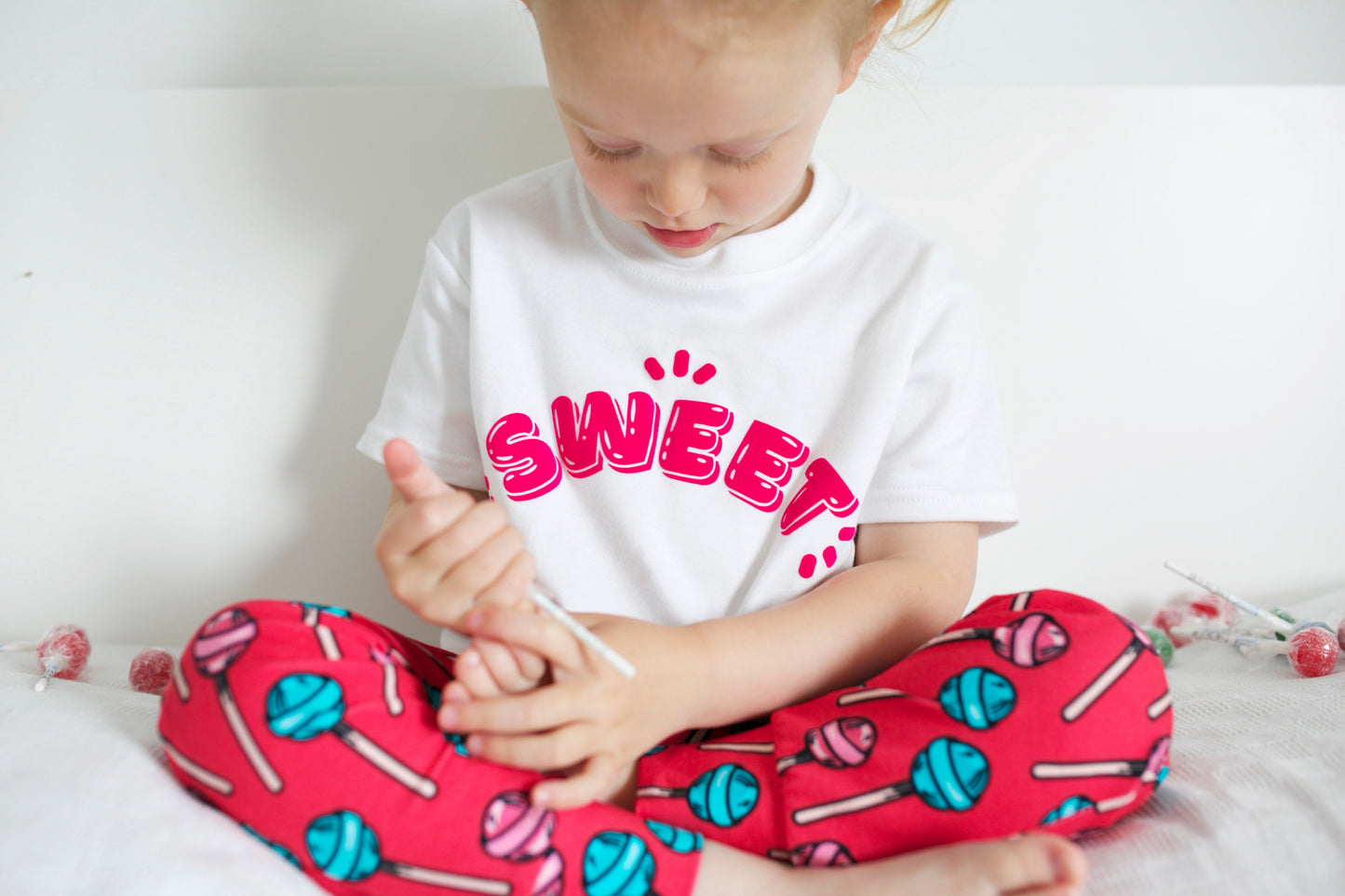 Our new Lolly print leggings are made in the UK from 95% Cotton 5 % Elastane