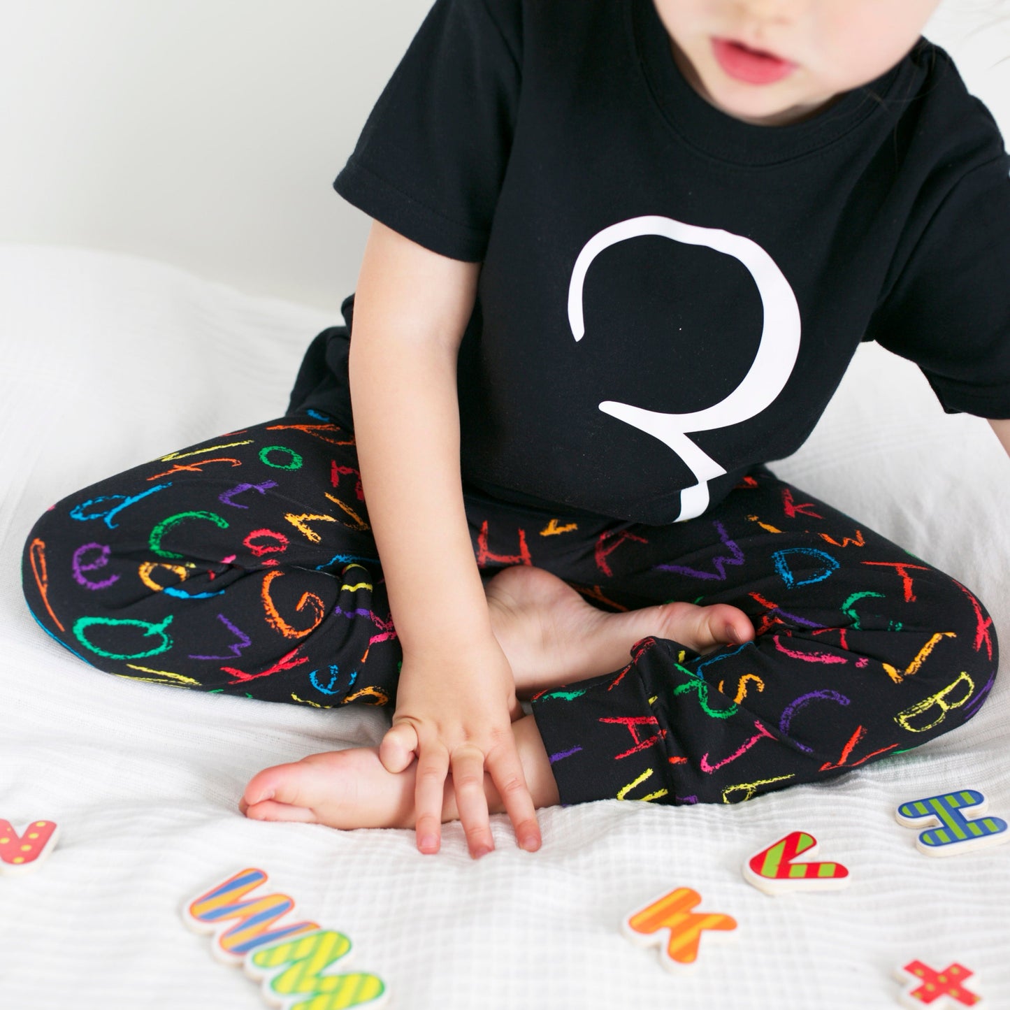 Fred & Noah baby leggings feature an enclosed non roll elasticated waist and are available in sizes 0-6. ( Premature sizes are available upon request ) The leggings also feature a reversible ankle cuff which can be turned up for shorter babies whilst also keeping their little socks on .All of our styles are cut for both disposable and cloth nappies and can be mixed and matched with our range of hand printed vests and T shirts .