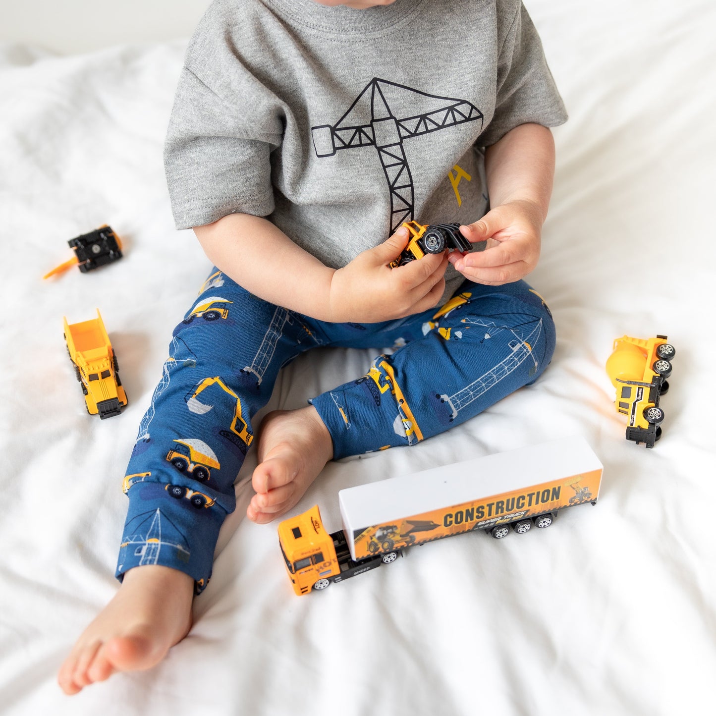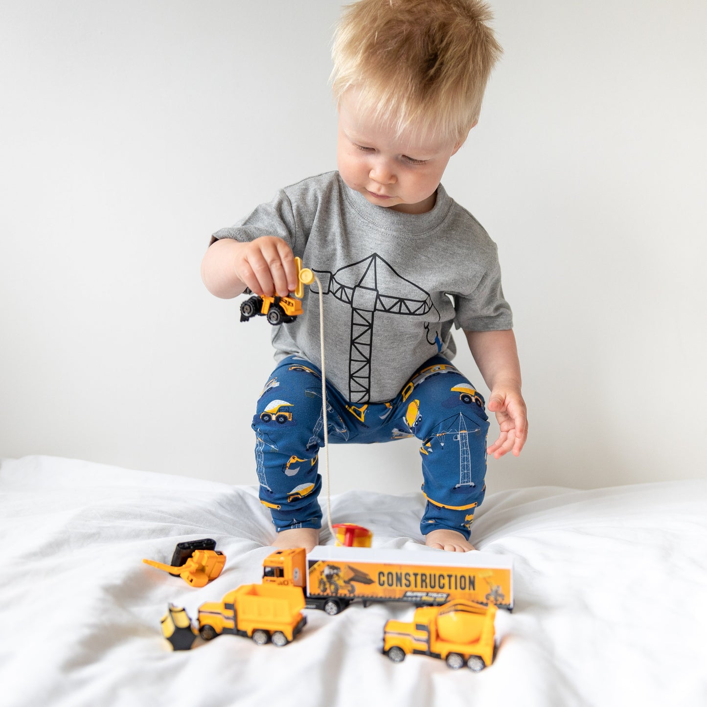 Our new Construction print leggings are made in the UK from 95% Cotton 5 % Elastane