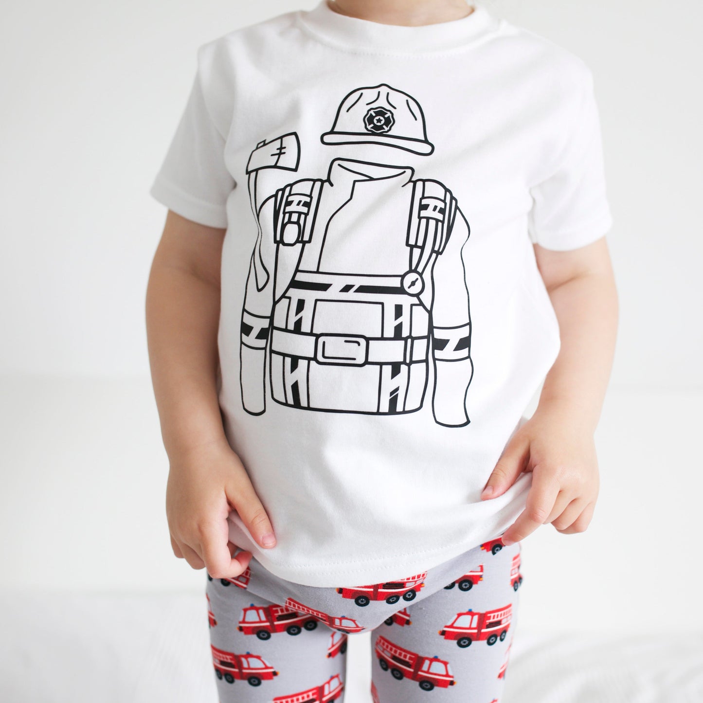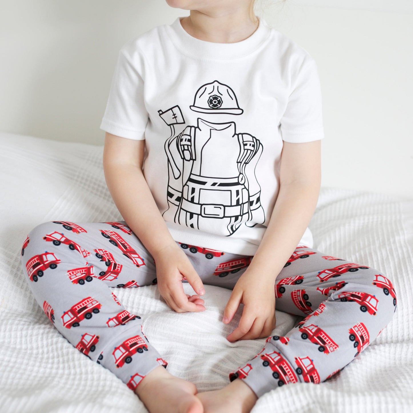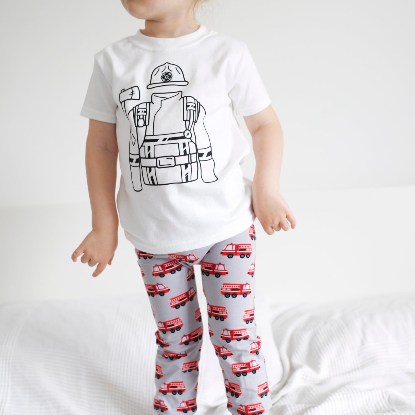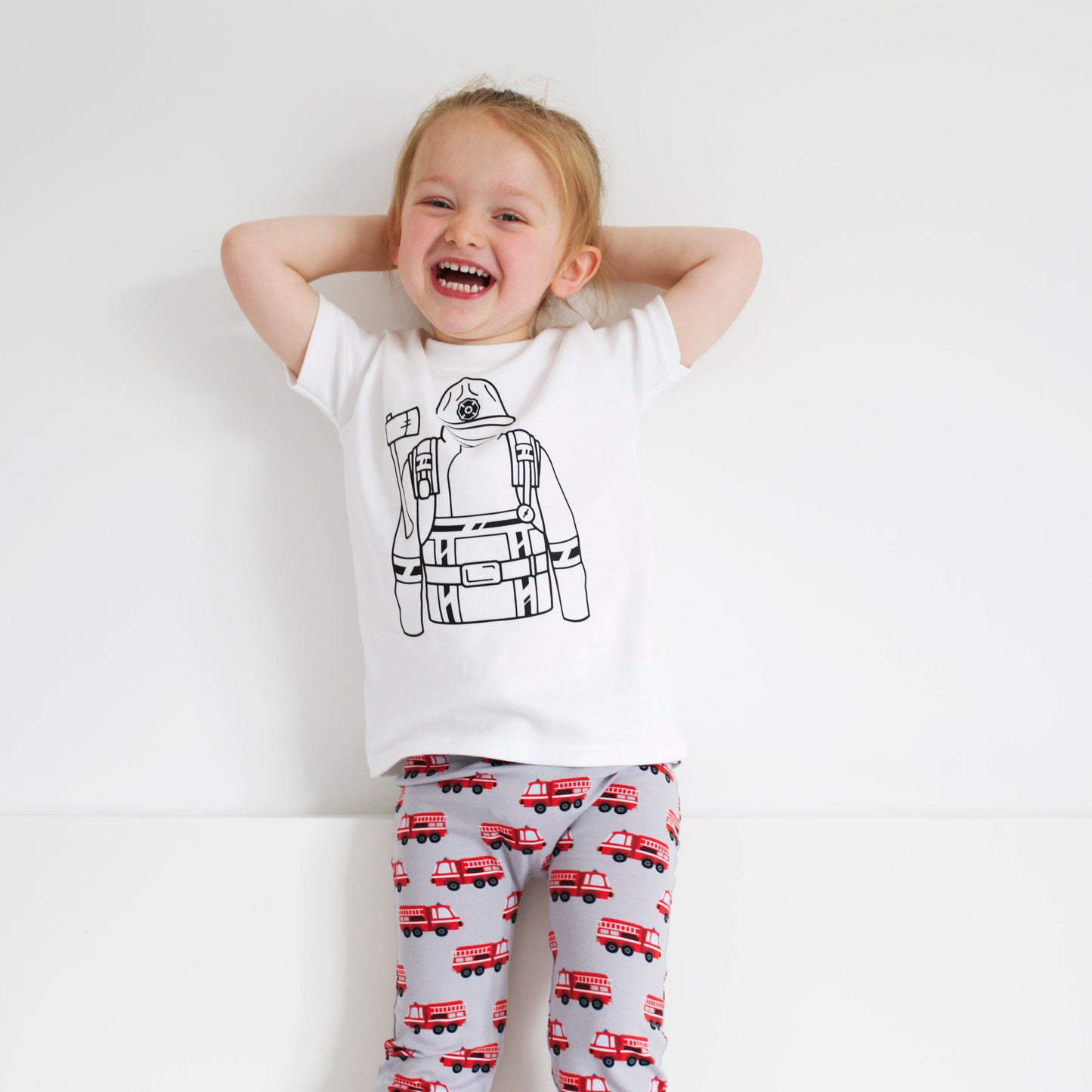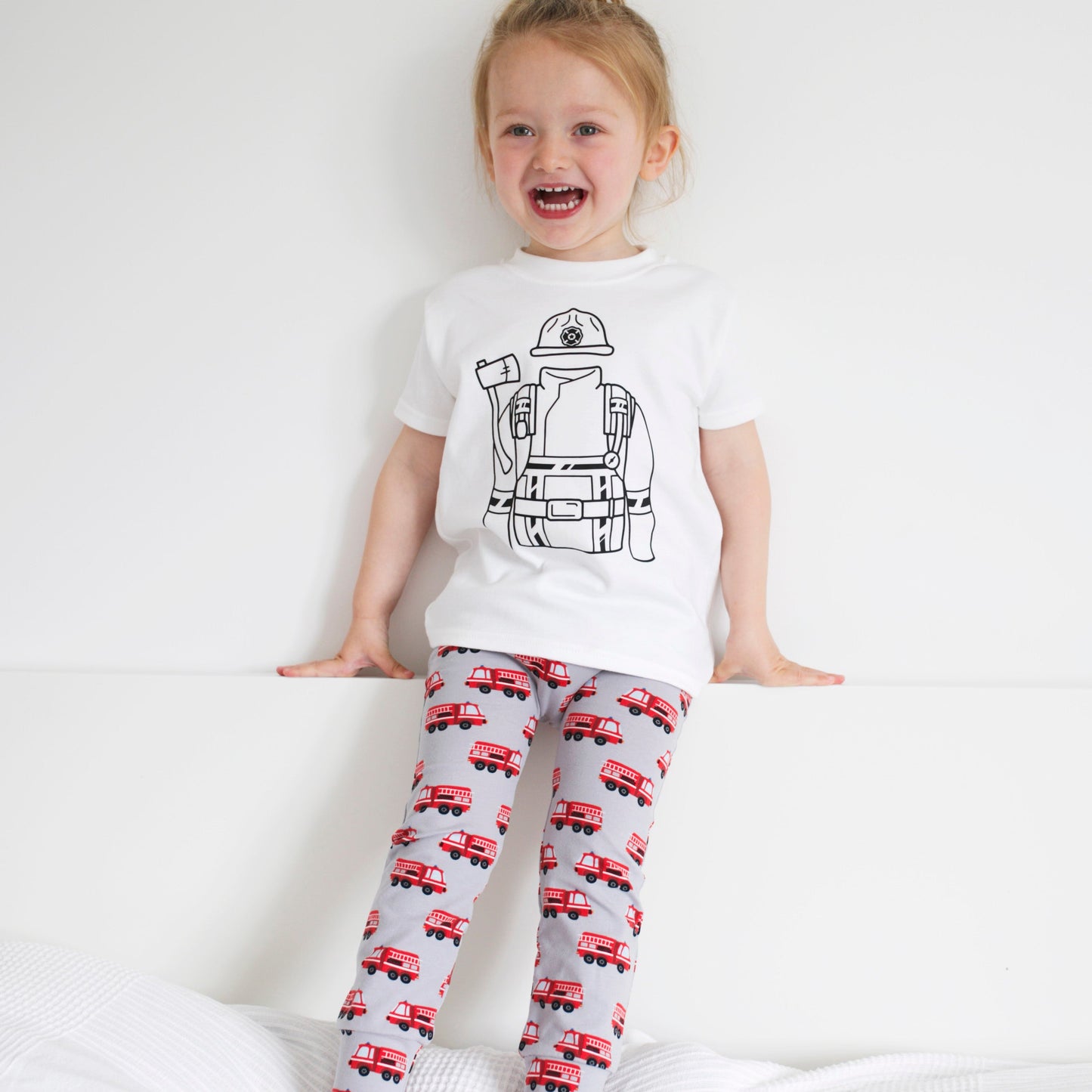 Our Grey fire engine print baby leggings are made in the UK from 95% Cotton 5 % Elastane Jersey.