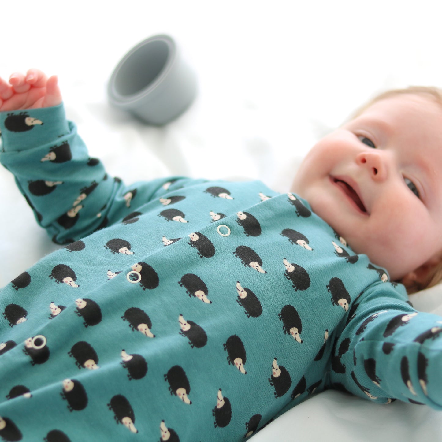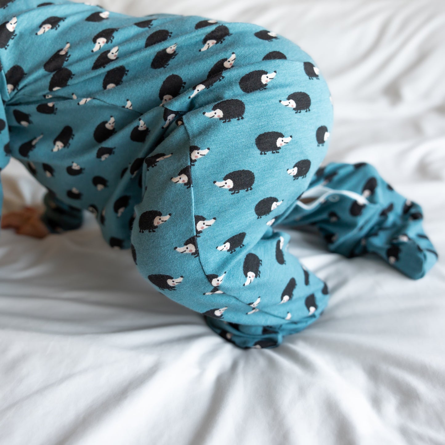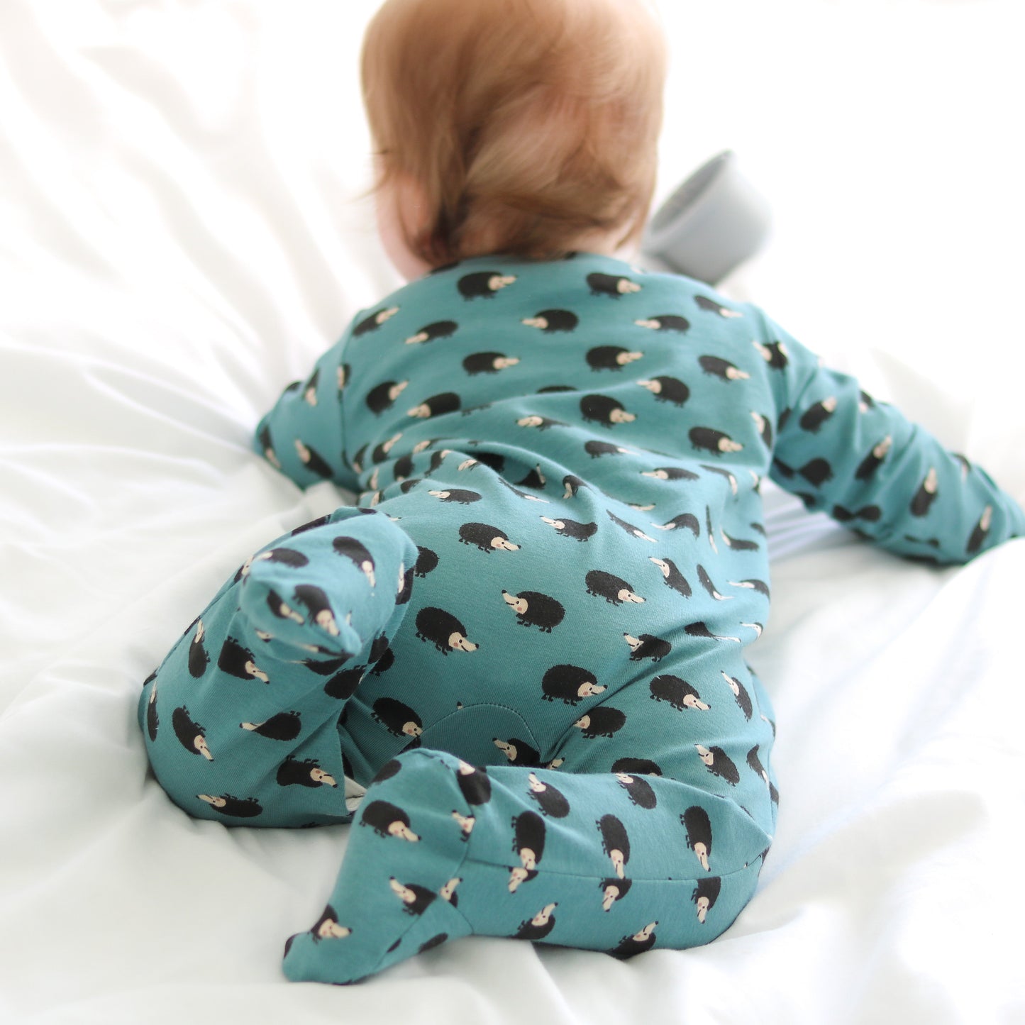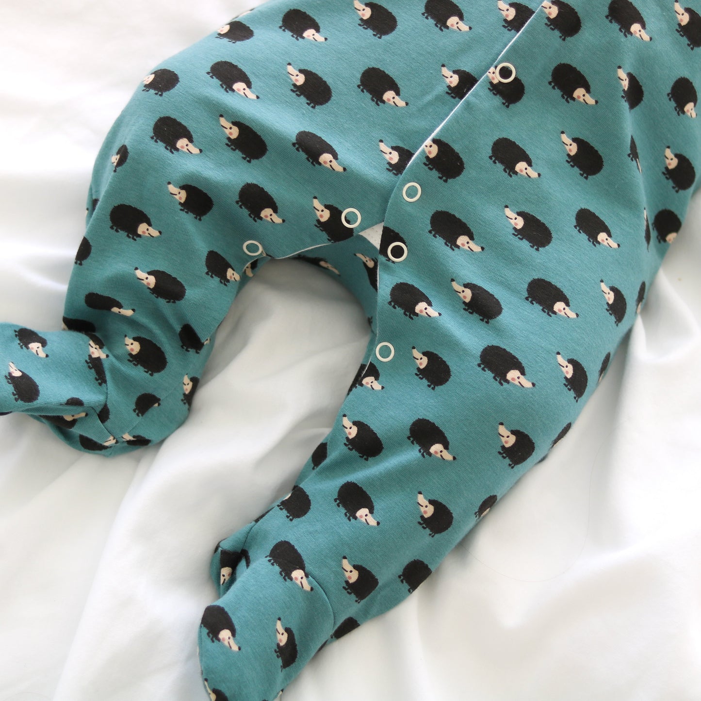 Our new and gorgeous Hedgehog print sleep suit is the perfect one-piece for any baby.