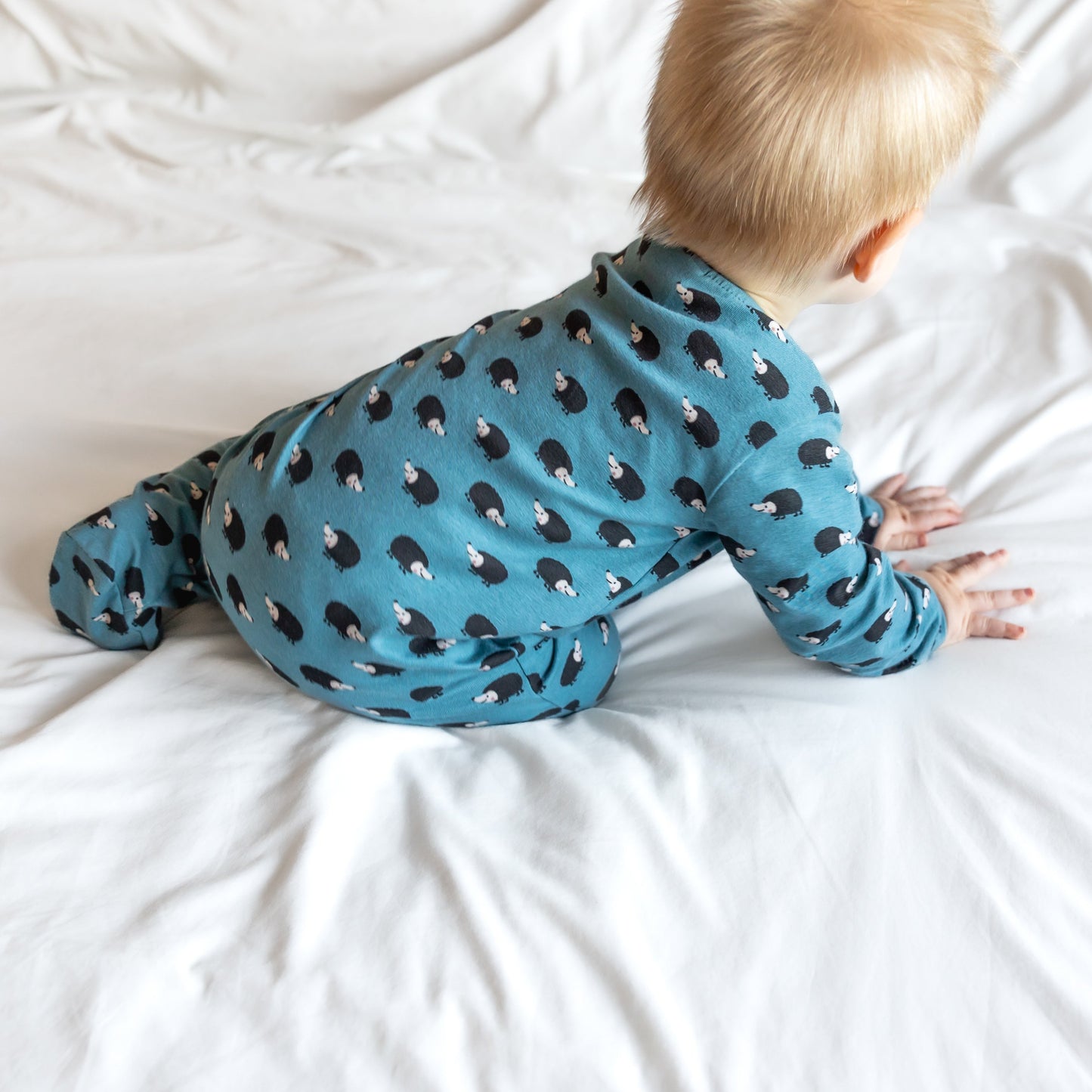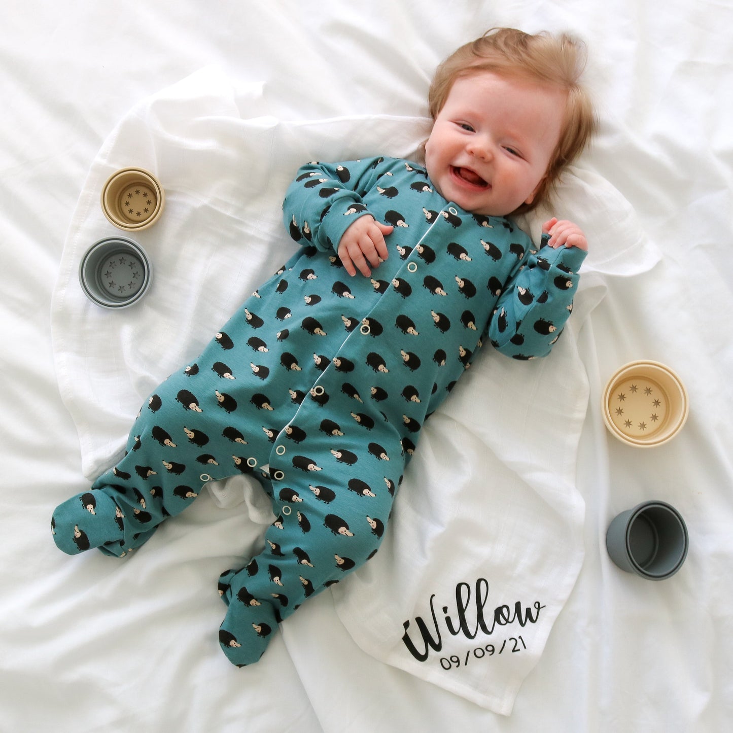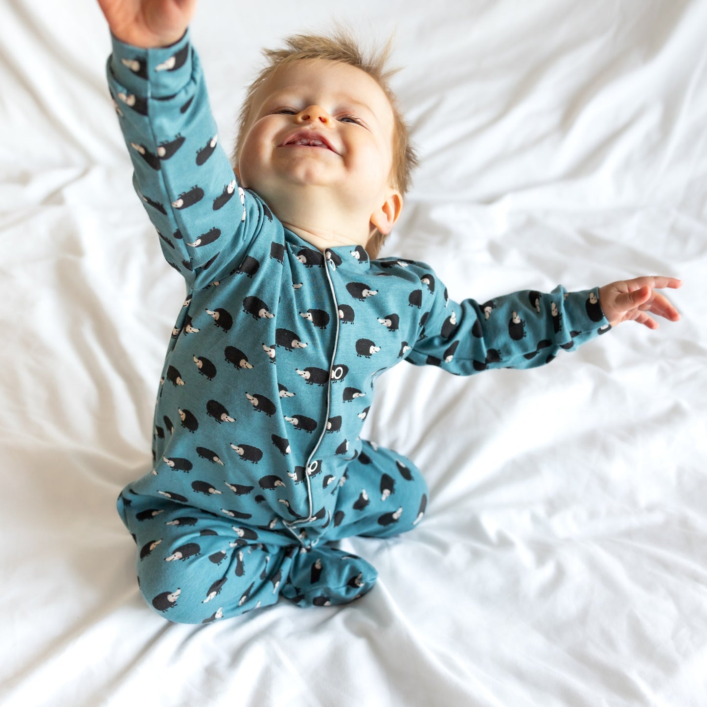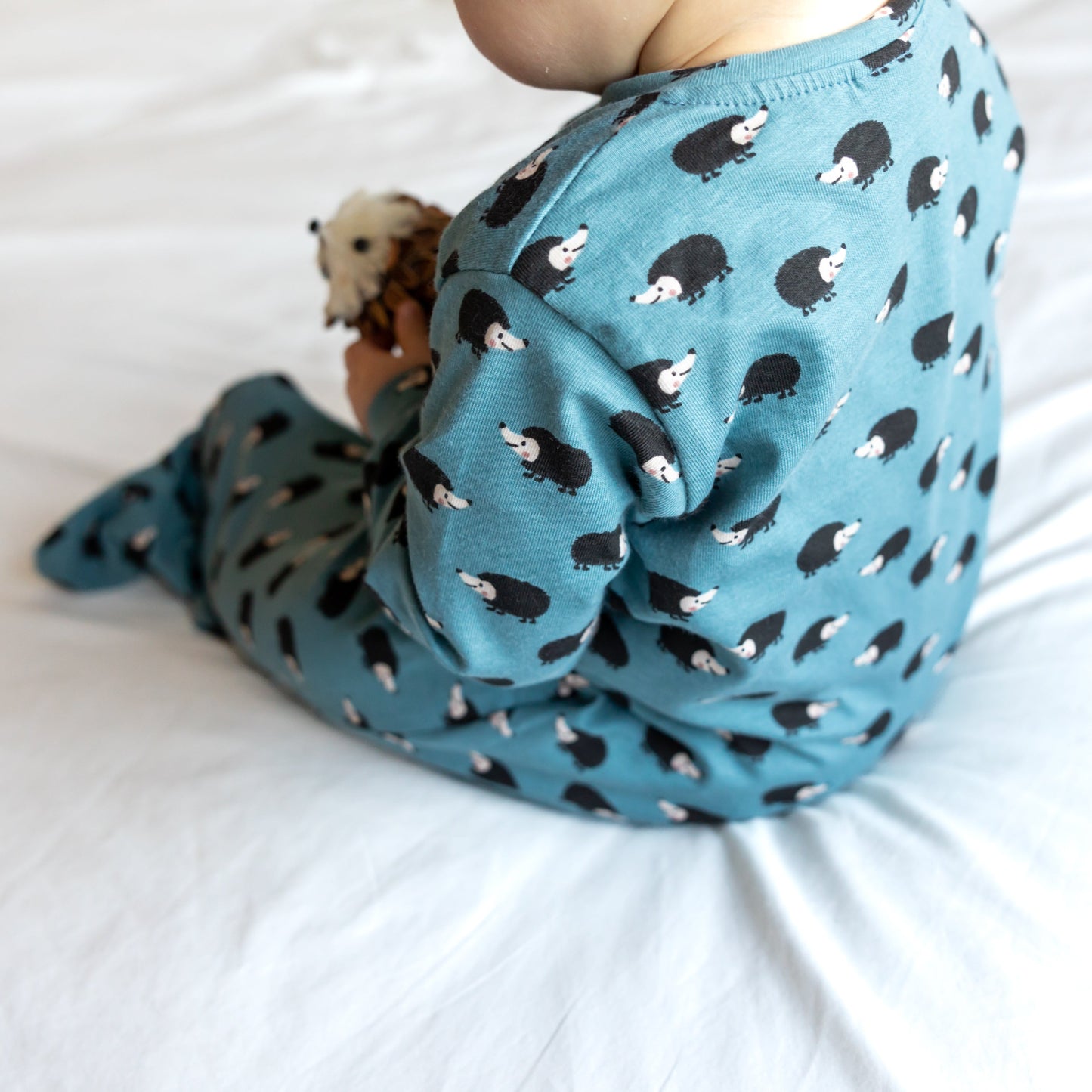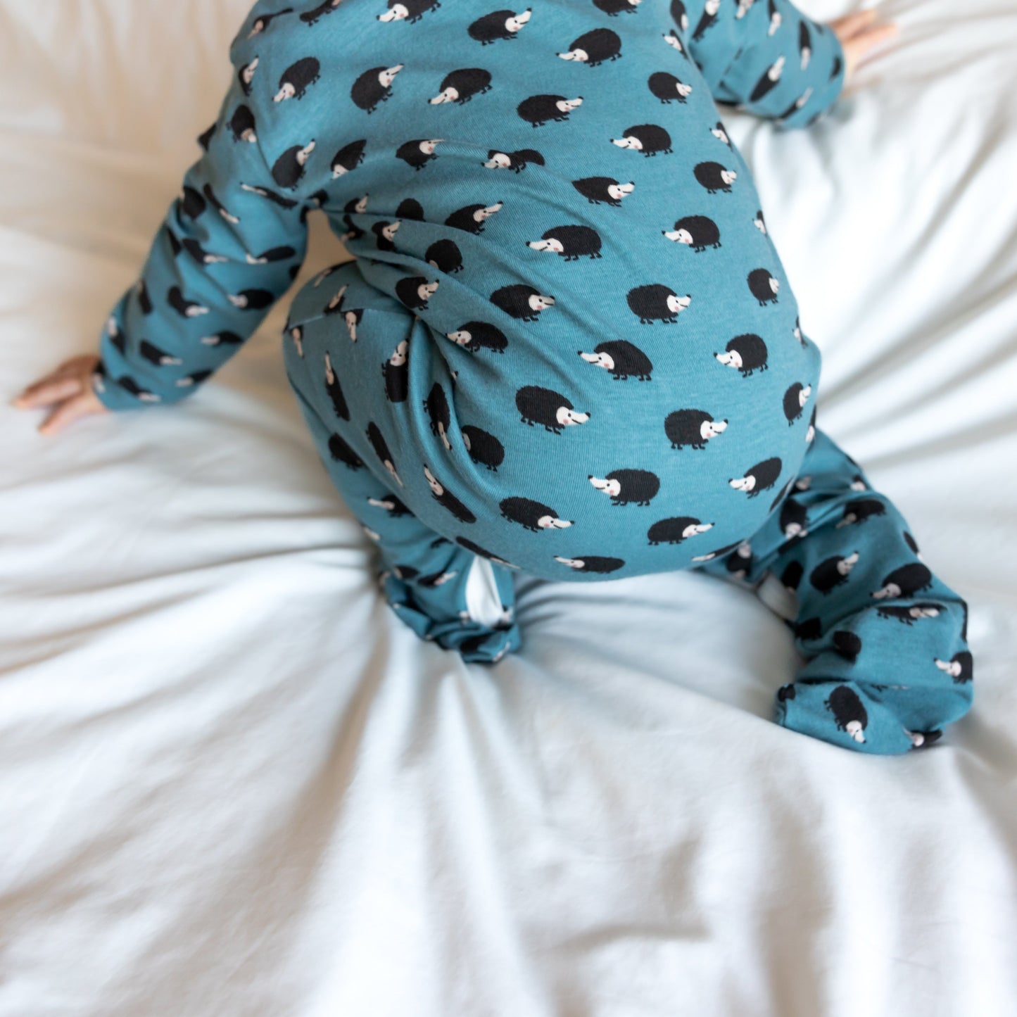 Our new and gorgeous Hedgehog print sleep suit is the perfect one-piece for any baby.